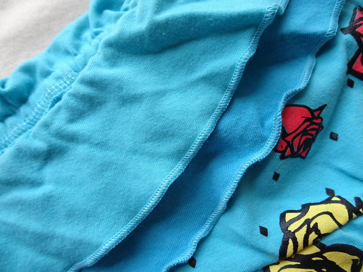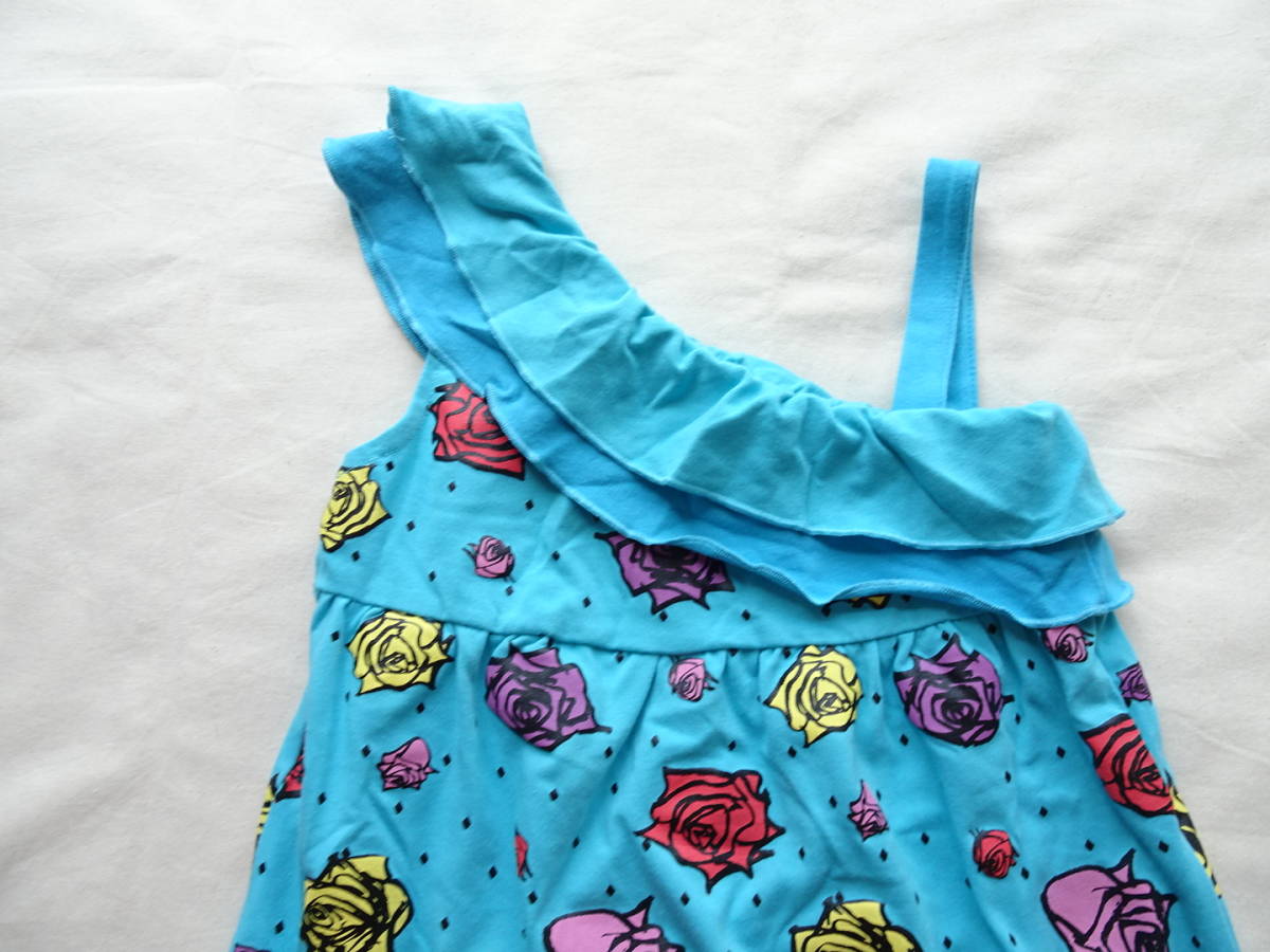 アシンメトリーデザインの可愛らしいお品で、衿ぐりのフリルは濃淡の異なるカラーの2段フリルです。