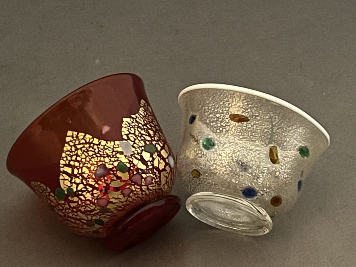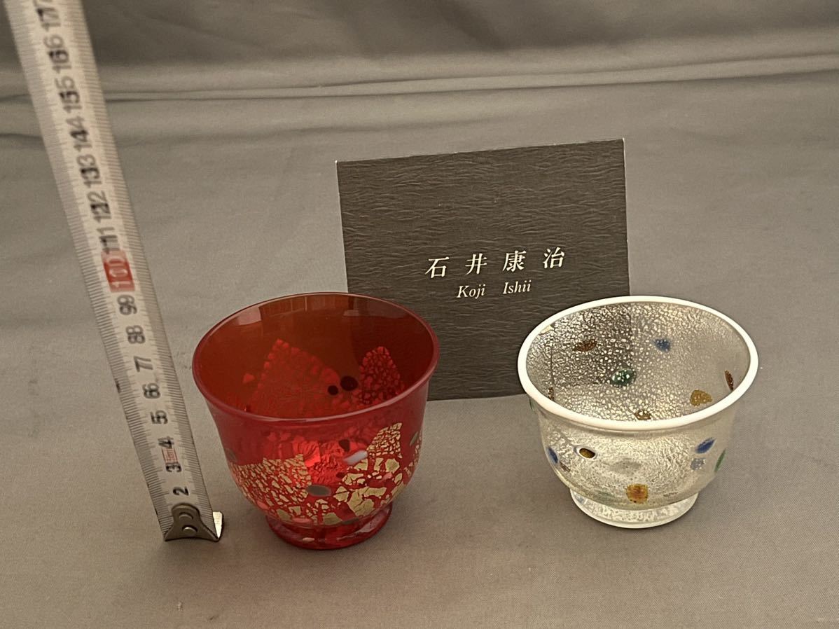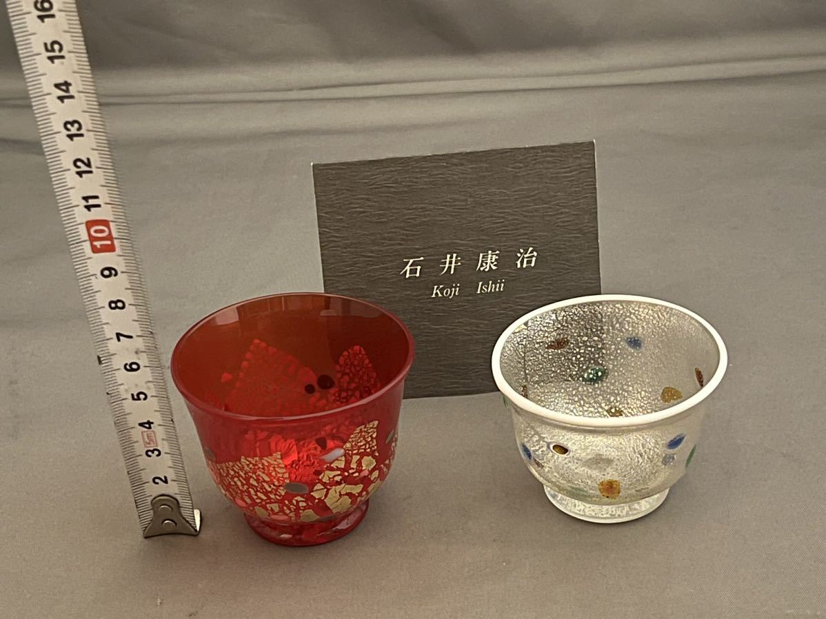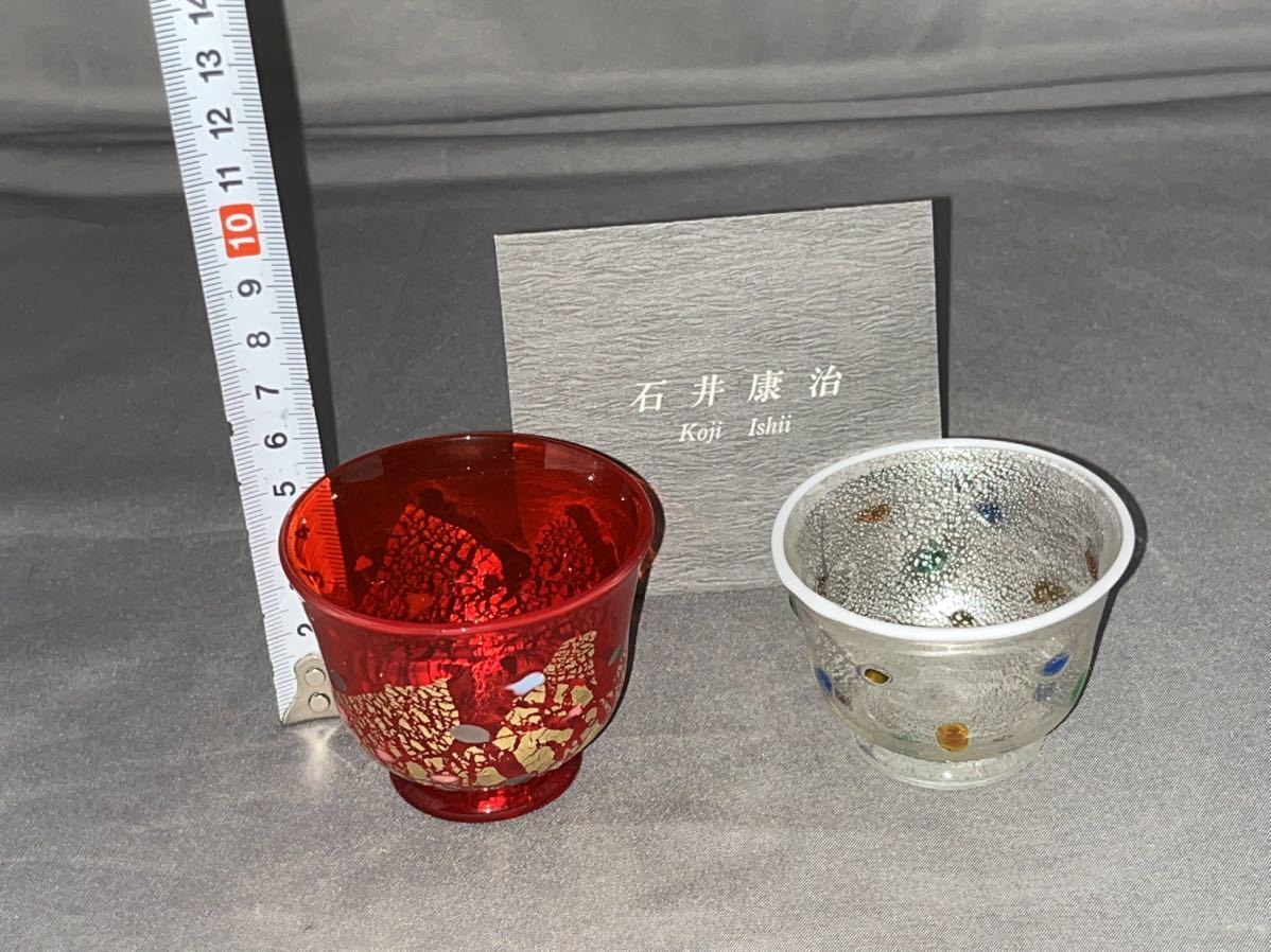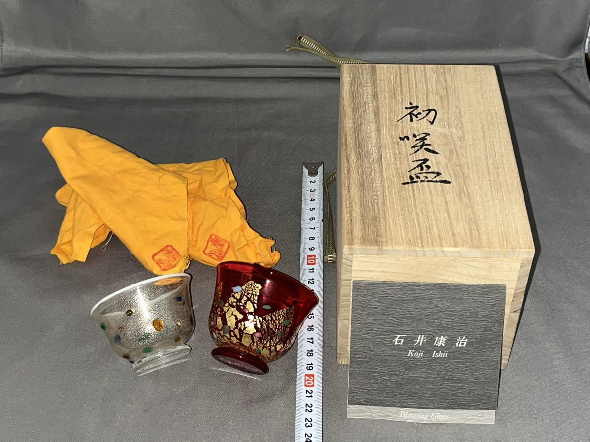 石井康治 作 ペア酒盃「初咲盃」 共箱、共布