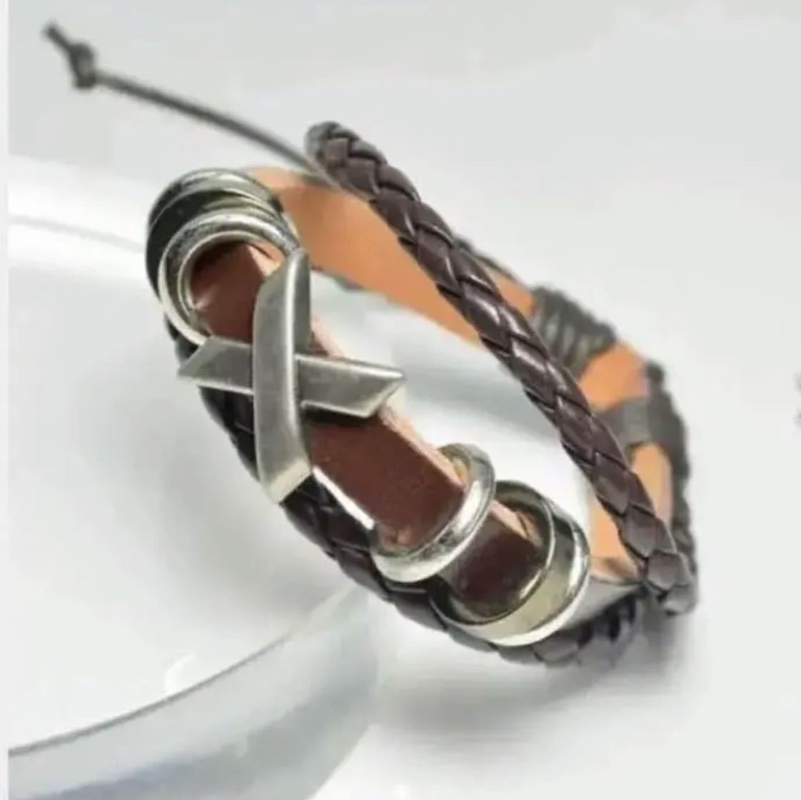 人気のクロスをモチーフにしたデザインのレザーブレスです^_^