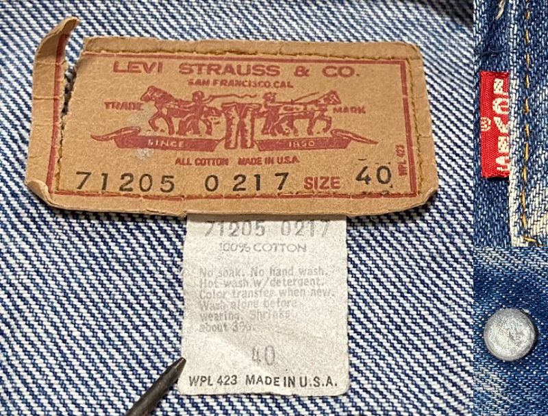 | 70s 80s Levi's リーバイス 71205 -0217 スモール e デニム ジャケット size 40 MADE IN USA アメリカ製 70505 ロング丈 | ||