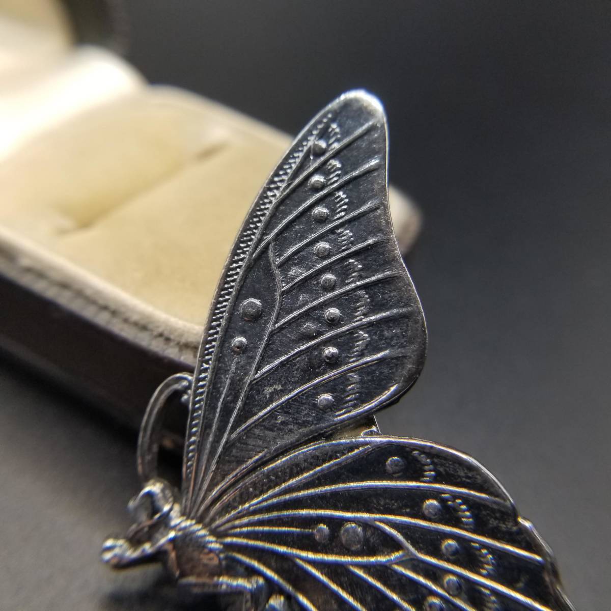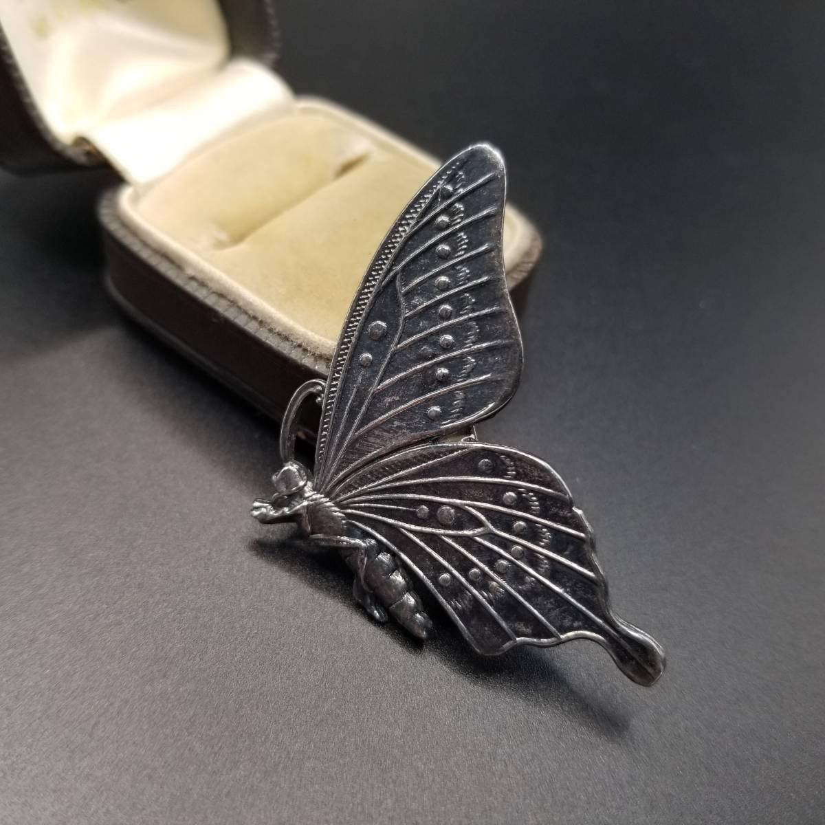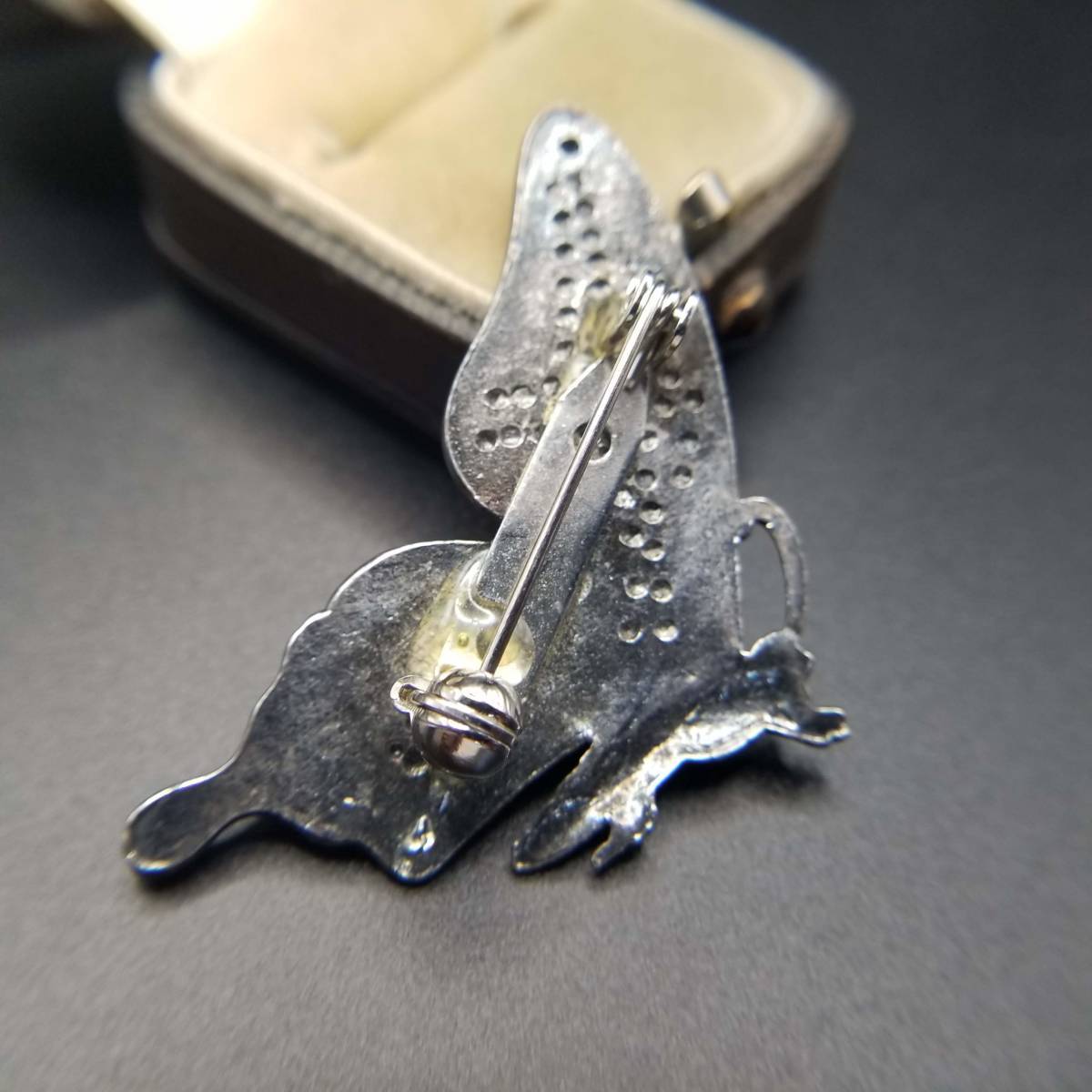 蝶々 モチーフ 昆虫 横向き 羽根 模様 ビンテージ ブローチ シルバーメタル レトロ コスチューム ジュエリー 輸入 YAR