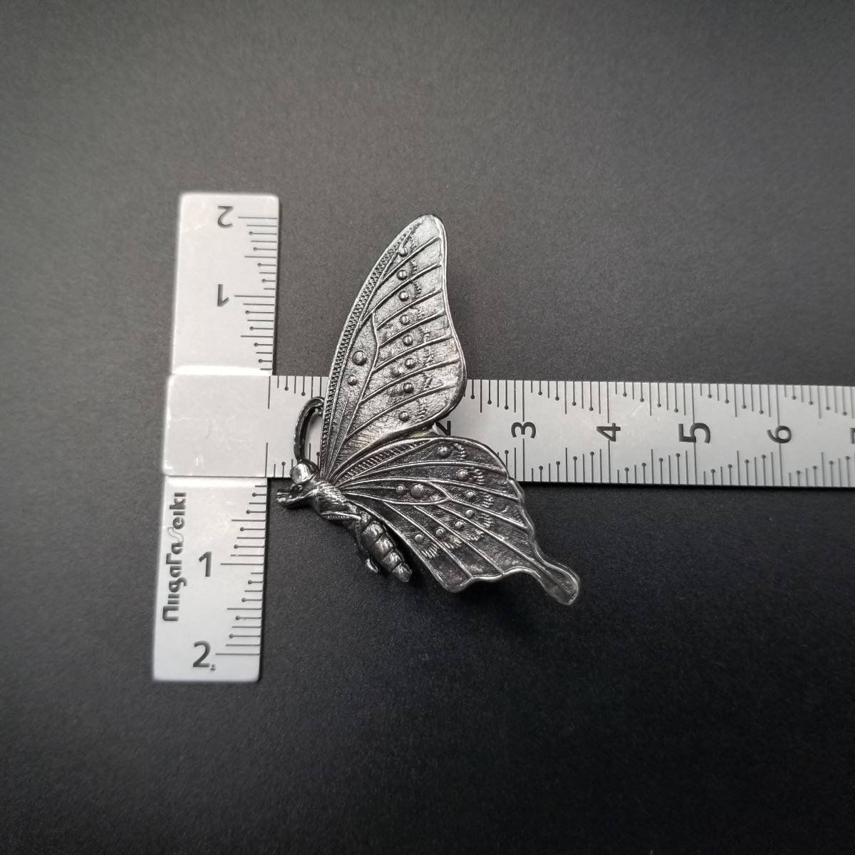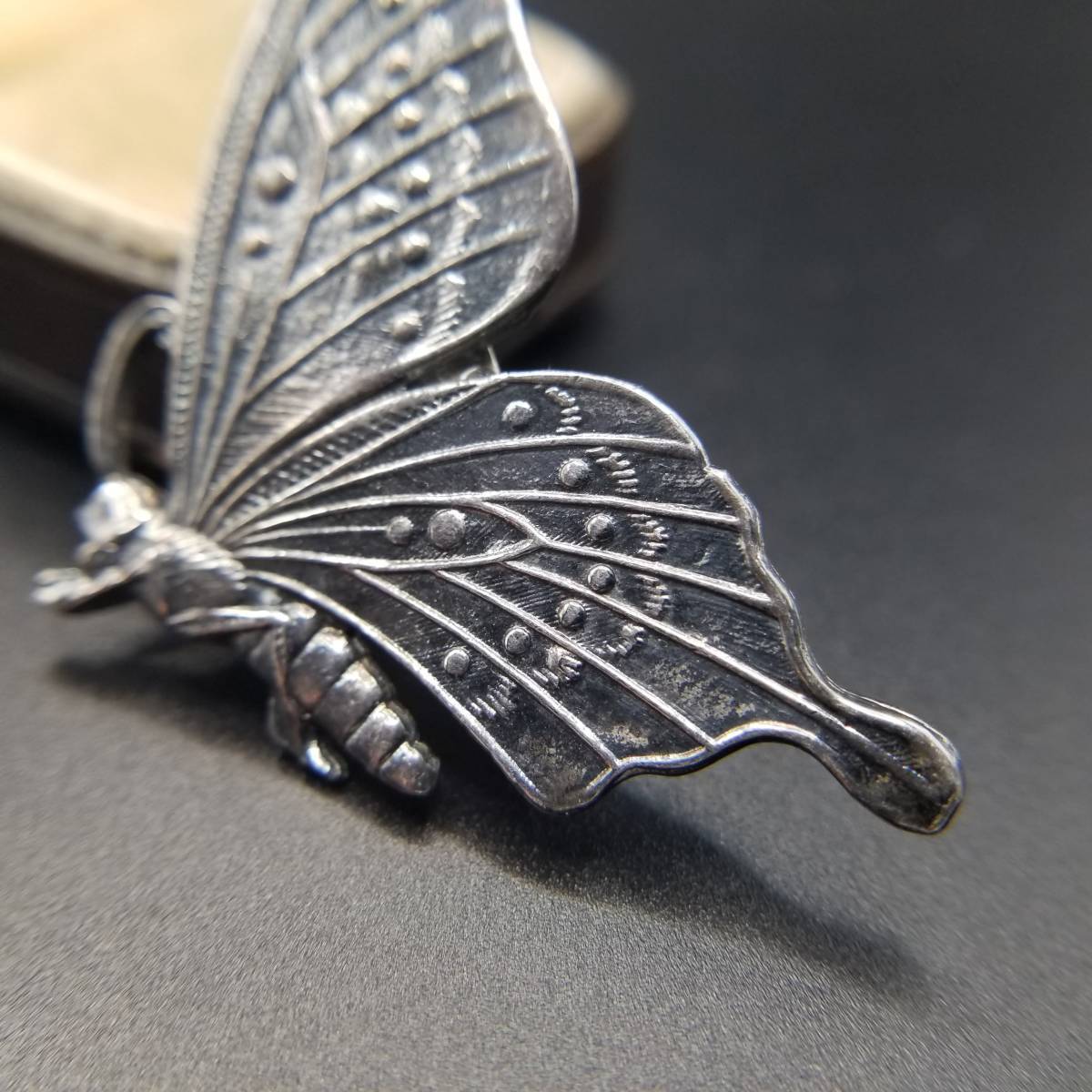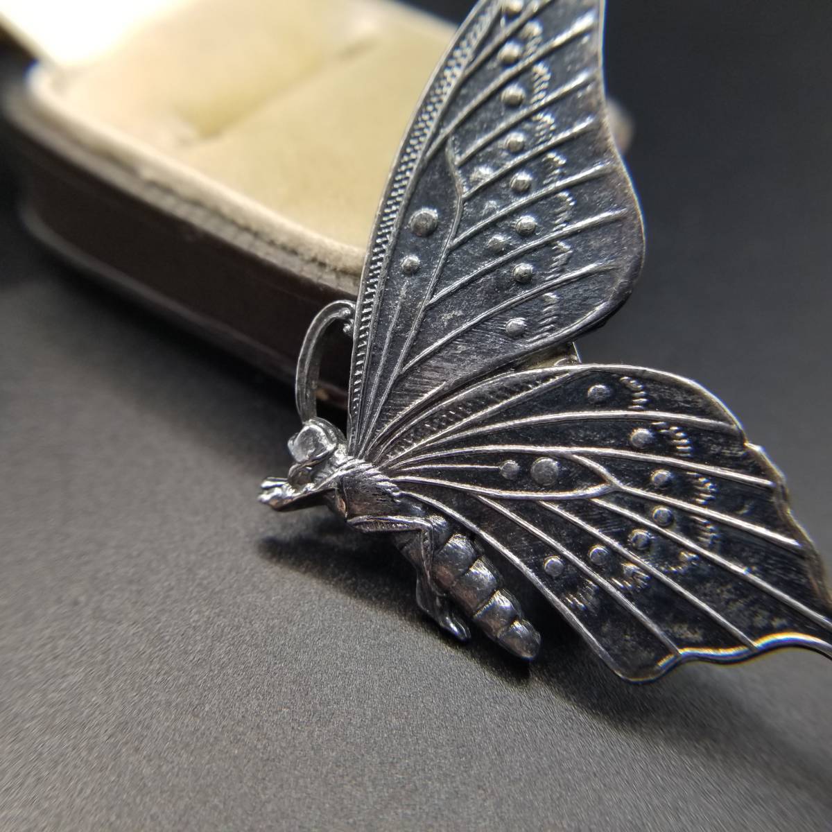 蝶々 モチーフ 昆虫 横向き 羽根 模様 ビンテージ ブローチ シルバーメタル レトロ コスチューム ジュエリー 輸入 YAR
