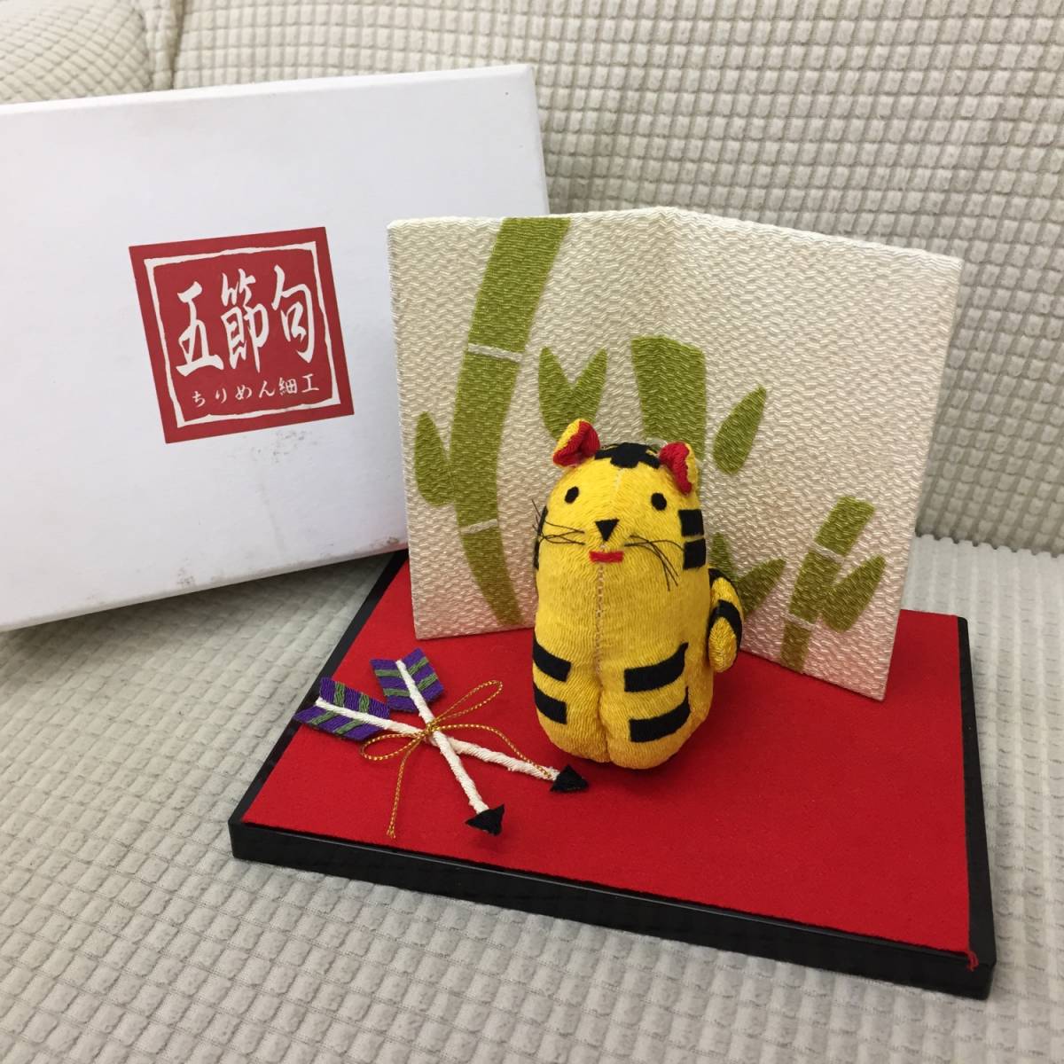 ◎サイズ 虎の全長:約8cm 屏風の縦×横:約12×14cm 黒い台座の縦×横:約12.5×17.5cm 箱込み総重量:約 184g ※多少誤差は生じると思います。 -------------- ◎状態 中古。 ちりめん素材の可愛い虎の置物です。 致命的なダメージは特に無いと思いますが、 長期保管品です。 屏風はとても倒れやすいです。 黒い台座は、拭いても拭いても ホコリなどが付きます。静電気のせいでしょうか。 画像10のように、箱は汚れやテープ痕などが あり、ダメージがあります。 手紙で箱に文字が書いてあります。 上記のように、美品ではありません。 あくまで中古です。 --------------