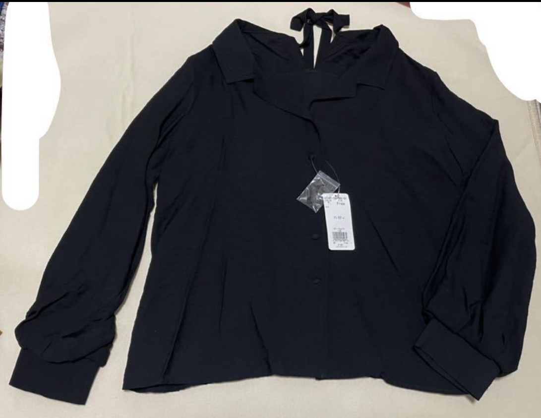 新品! ファン FUN トップス シャツ 長袖 バルカラー バックリボン 無地 M 黒 ブラック 【表記サイズ】M