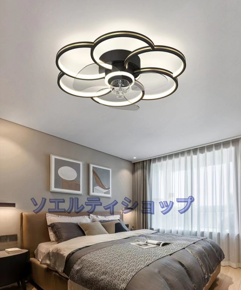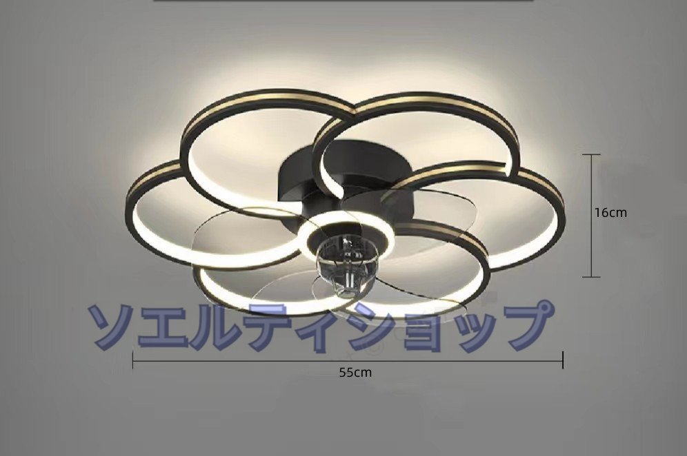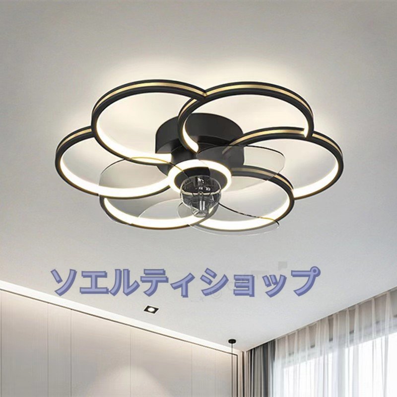 新品推薦★LEDシーリングファンライト リビング照明 寝室照明 天井照明 無段階調光調色 リモコン付 花型