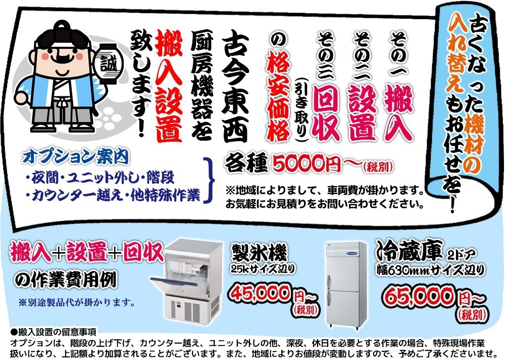 ◆厨房機器の搬入設置・入れ替え・回収・廃棄・処分