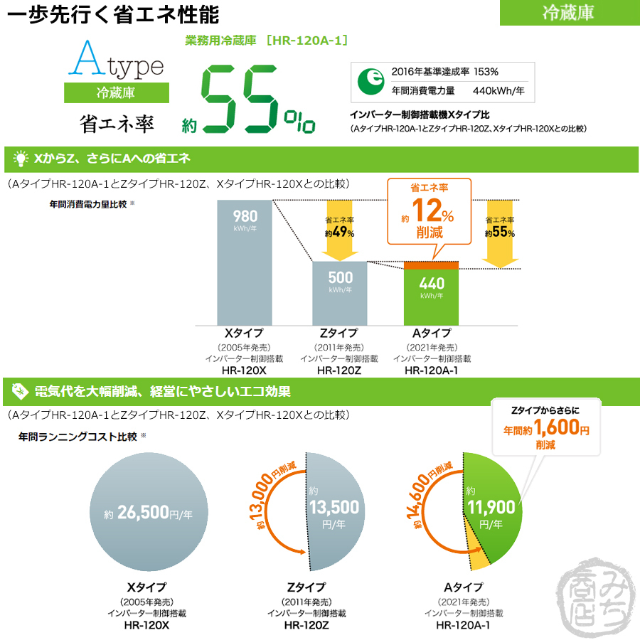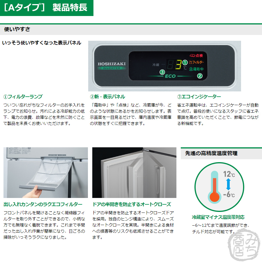 インバーター制御を搭載したホシザキの省エネ縦型冷蔵庫。