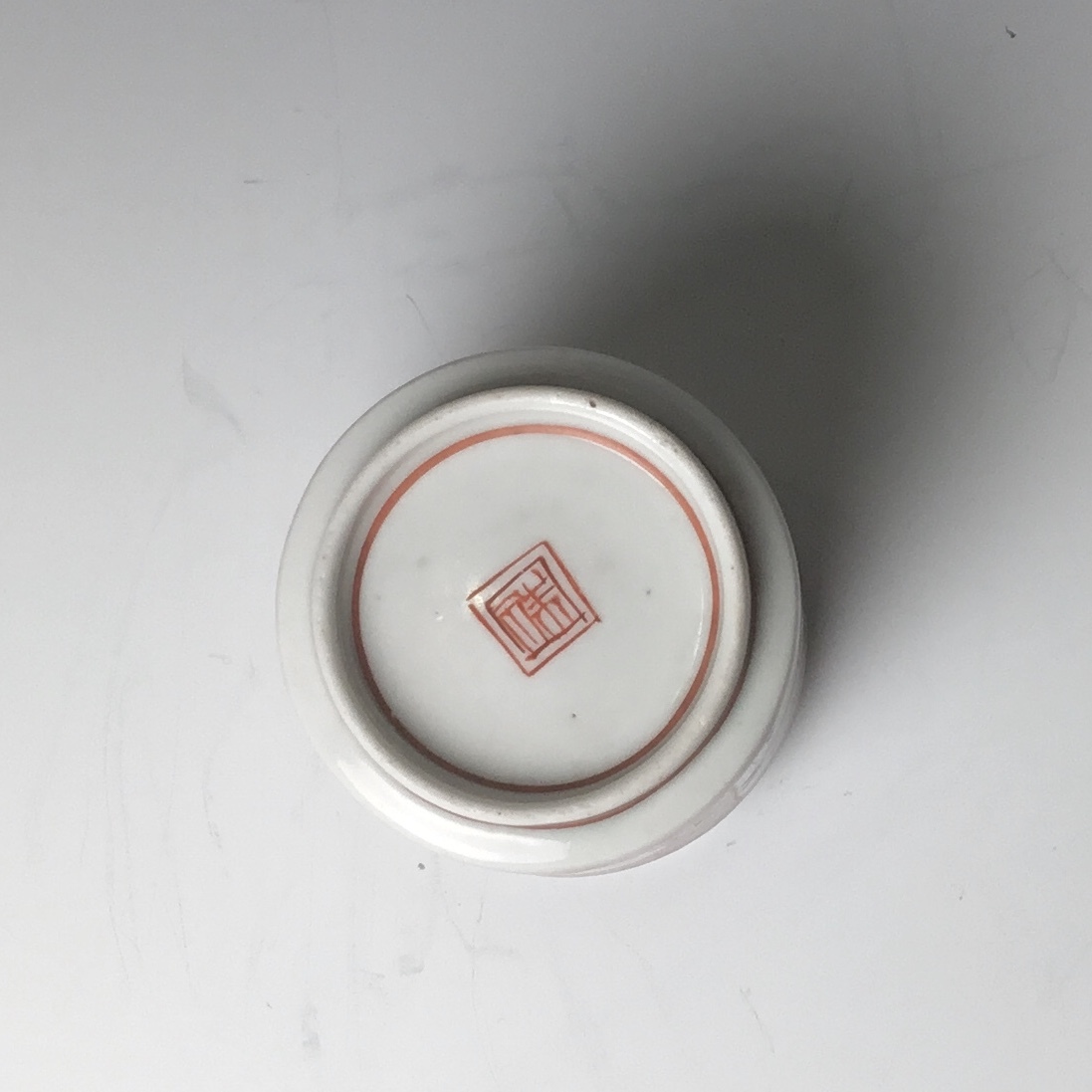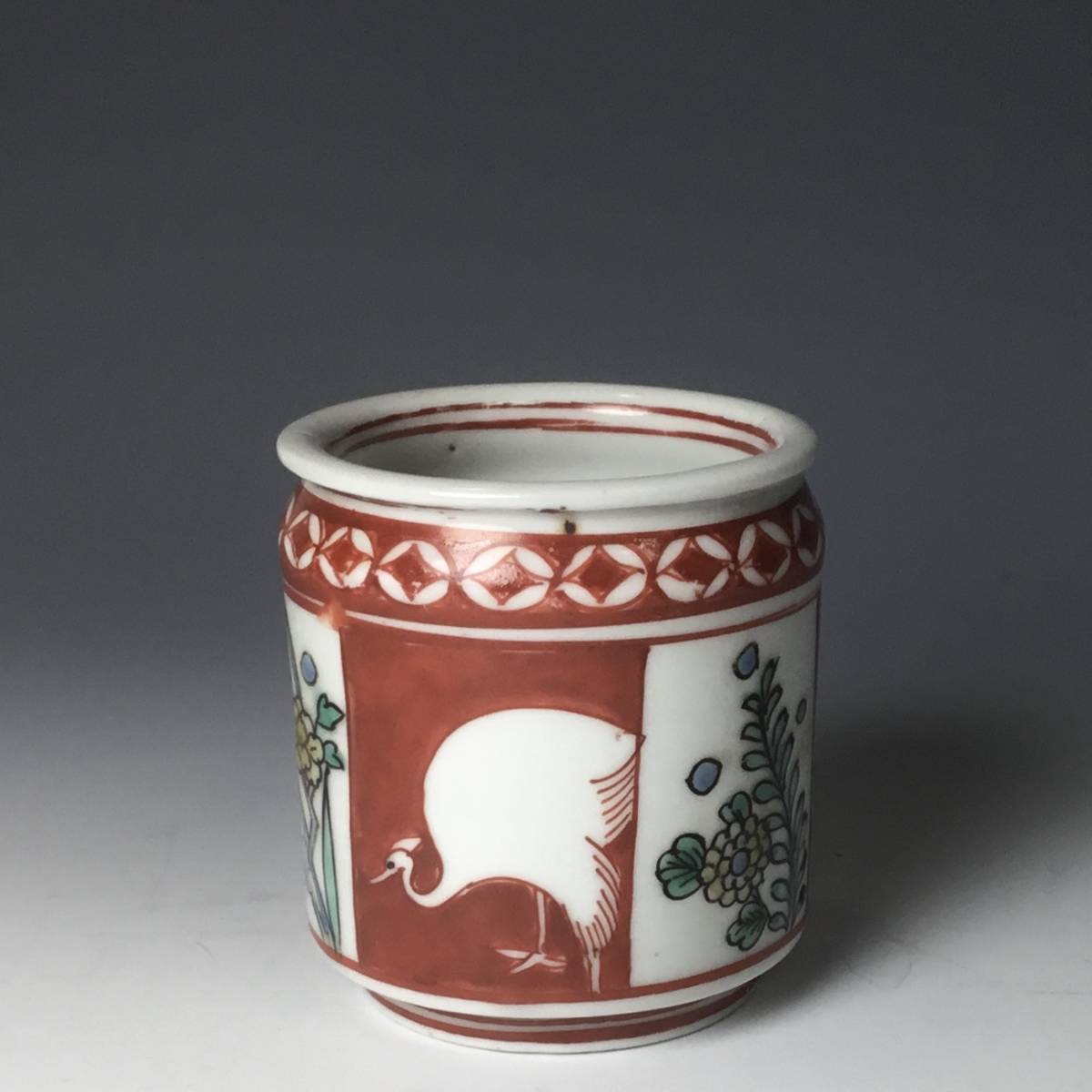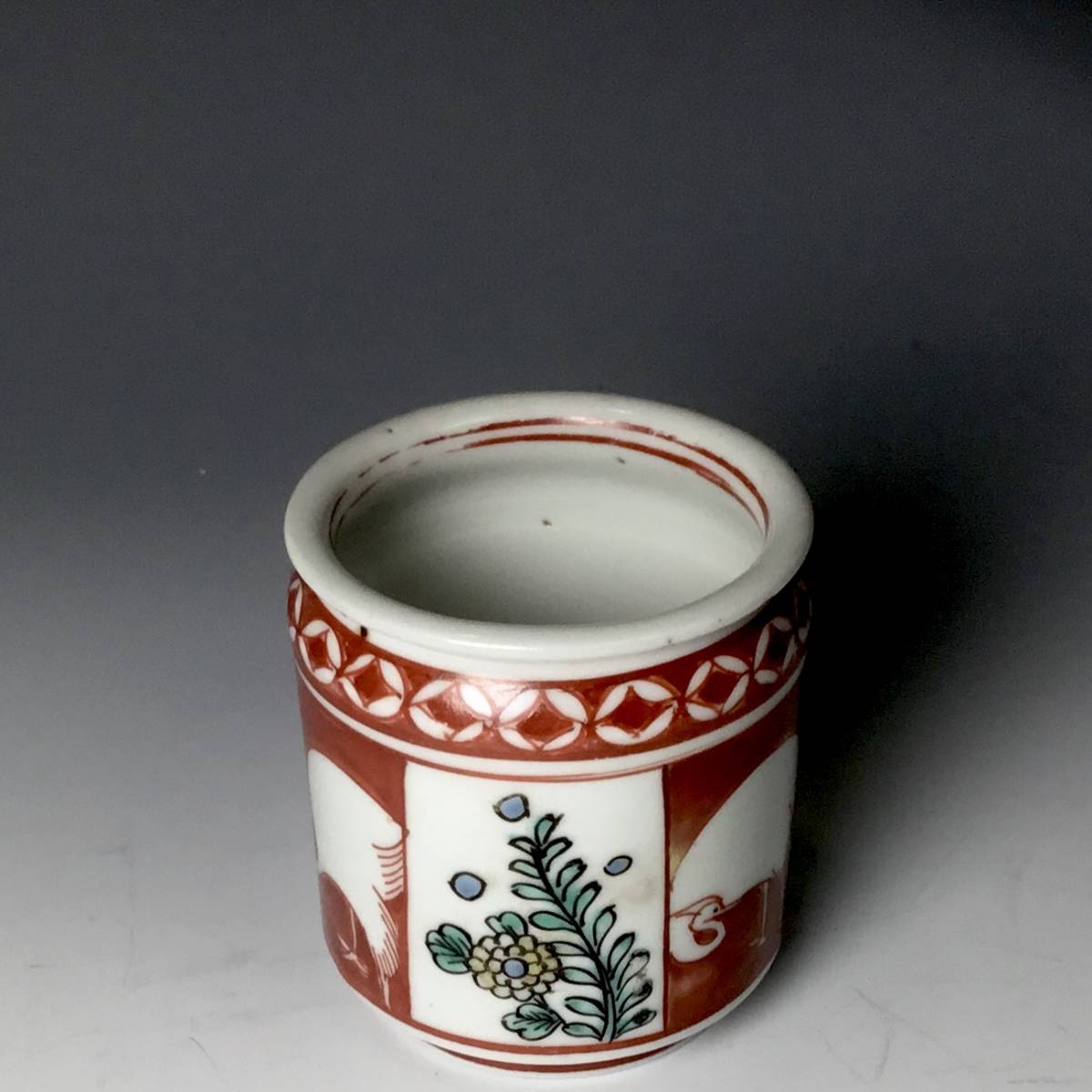 古伊万里:文化文政期鷺白抜牡丹のぞき猪口珍しい形⑤
