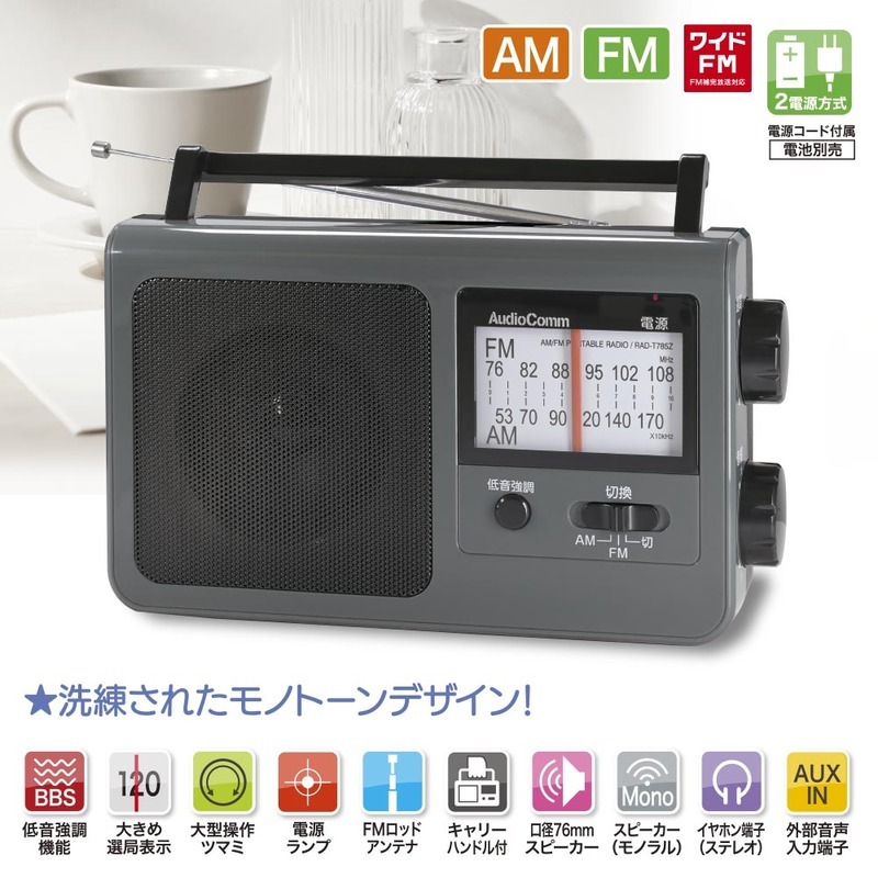 ■ 受信周波数:AM…530-1700kHz、FM…76-108MHz