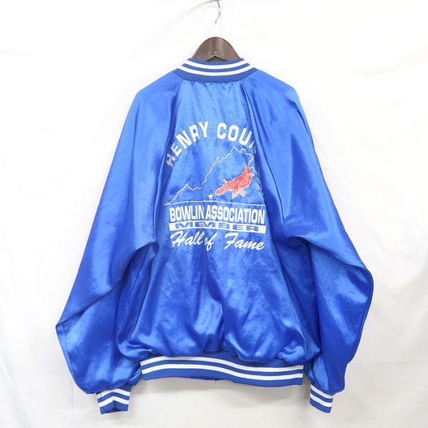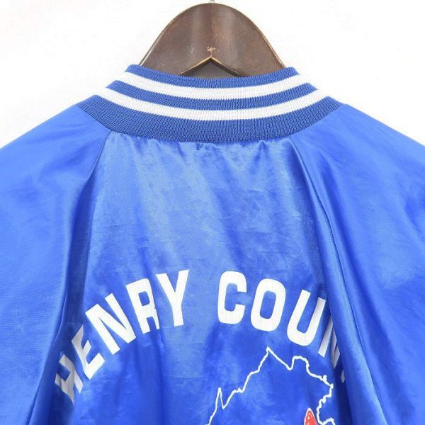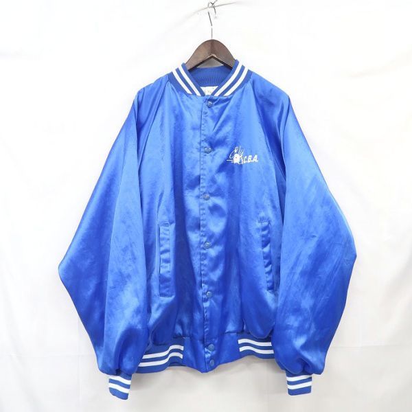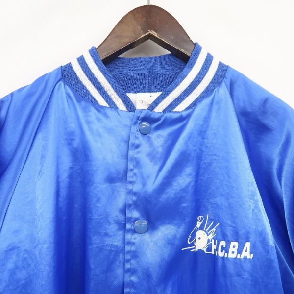 :ビンテージのスタジアムジャンパーです。カラーはブルー、素材はナイロンになります。