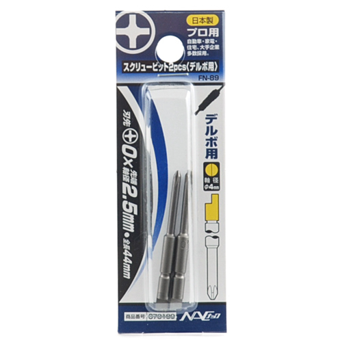 NAC スクリュービット2PCS FN-89 0×44mm-2 デルボ電動ドライバー専用 ドライバービット 日本製