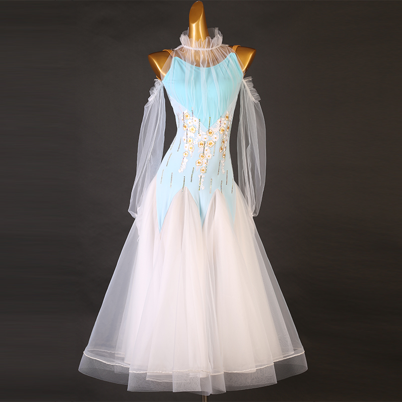 新品 レディース社交ダンスモダンドレス 競技試合ドレス サイズセミオーダー可 可愛いモチーフ飾 S~XXL 優しいカラー