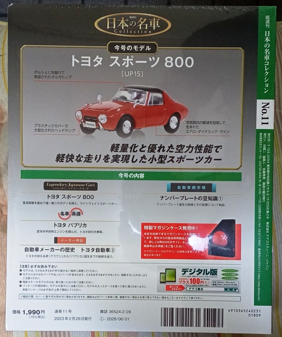 ☆ディアゴスティーニ 1/64日本の名車コレクション11 トヨタ スポーツ800[UP15]1965☆新品未開封品