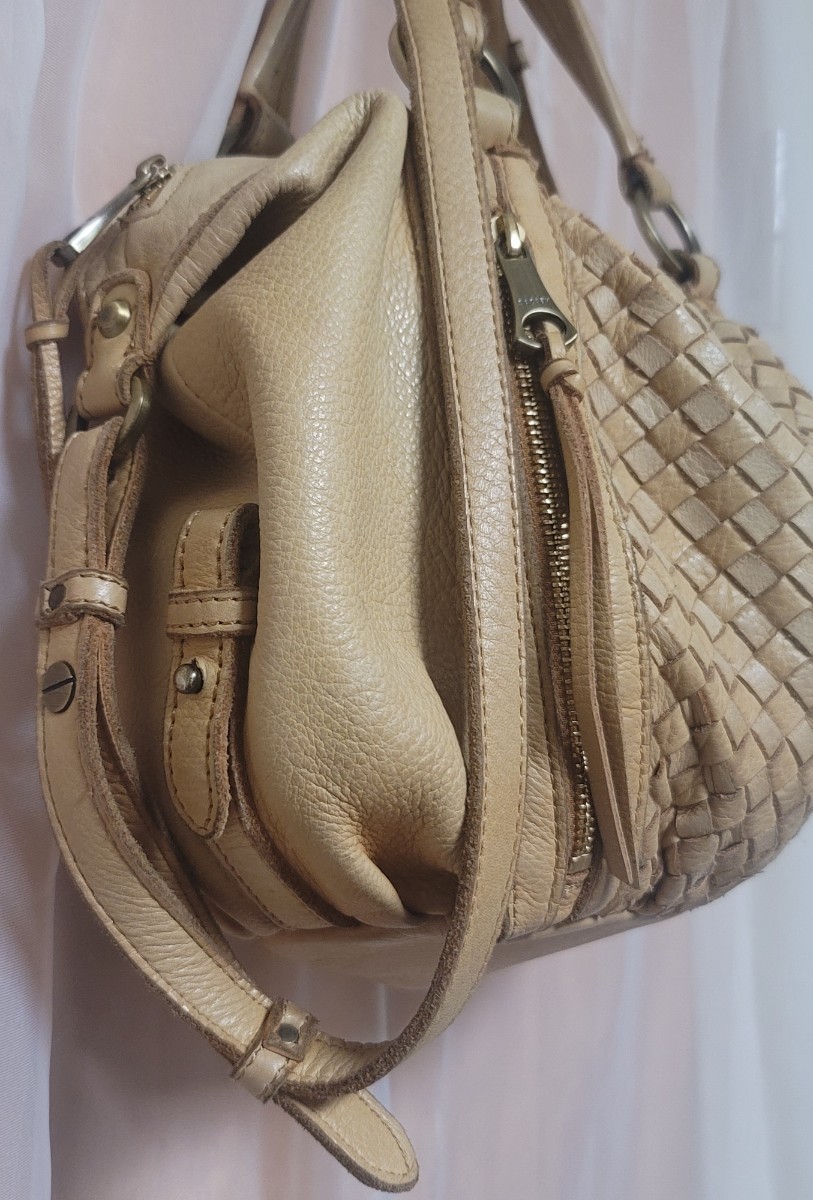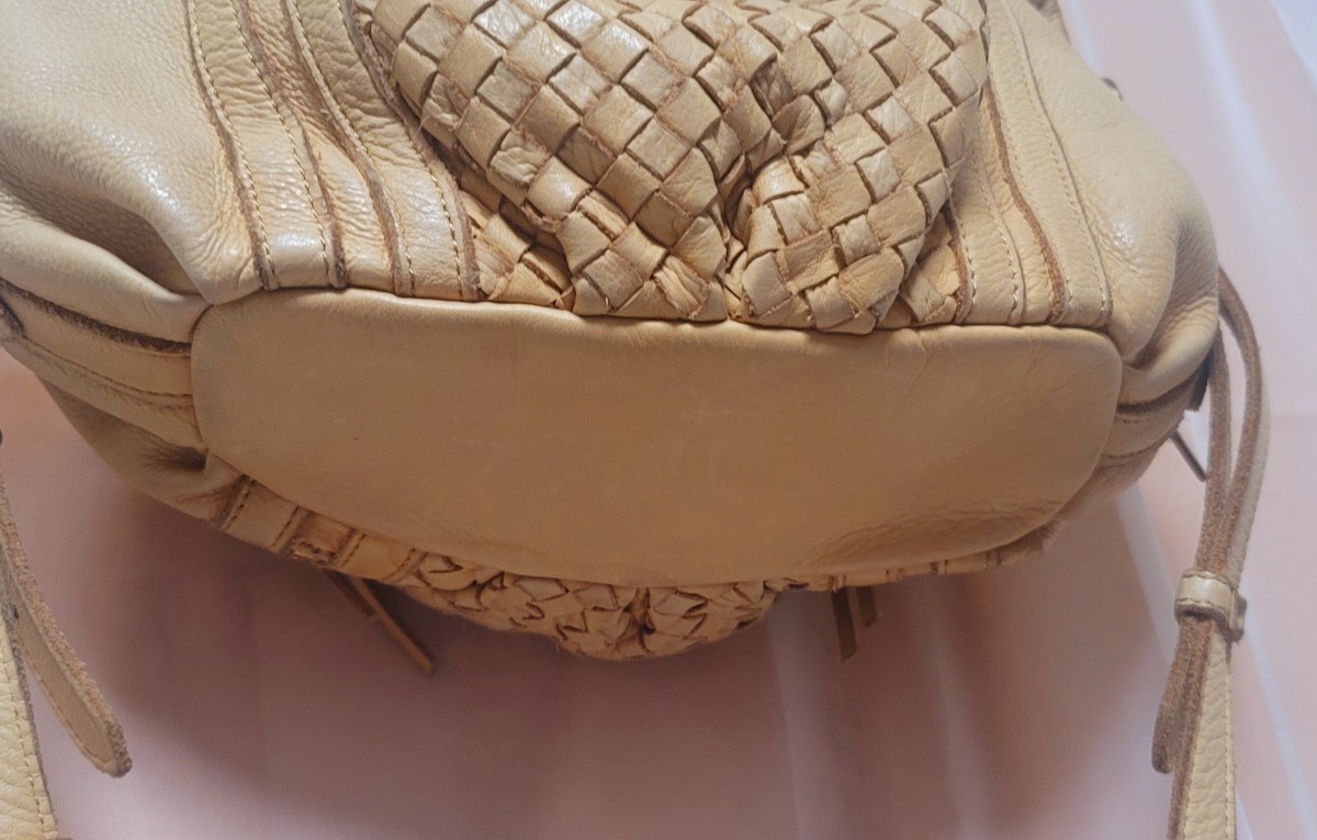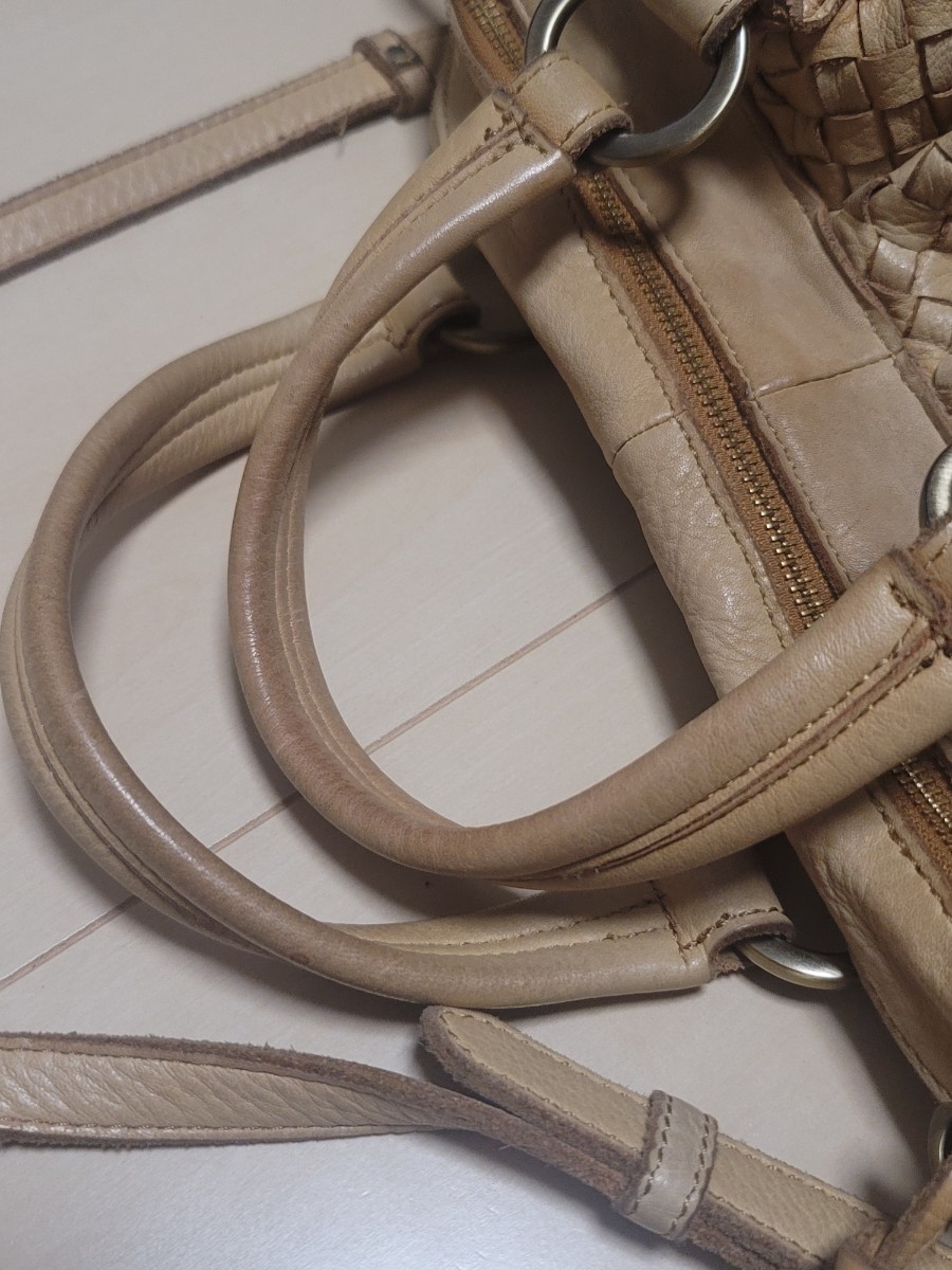 商品状態:ベージュ系のレザーの為、経年の汚れ、底面雨じみなどレザーの使用感がありますが、目立つダメージはありません。総レザーで使い込むほど味のあるバッグです。