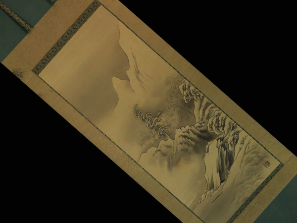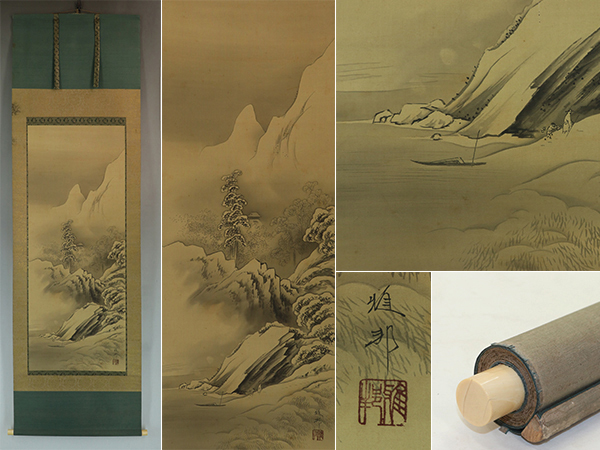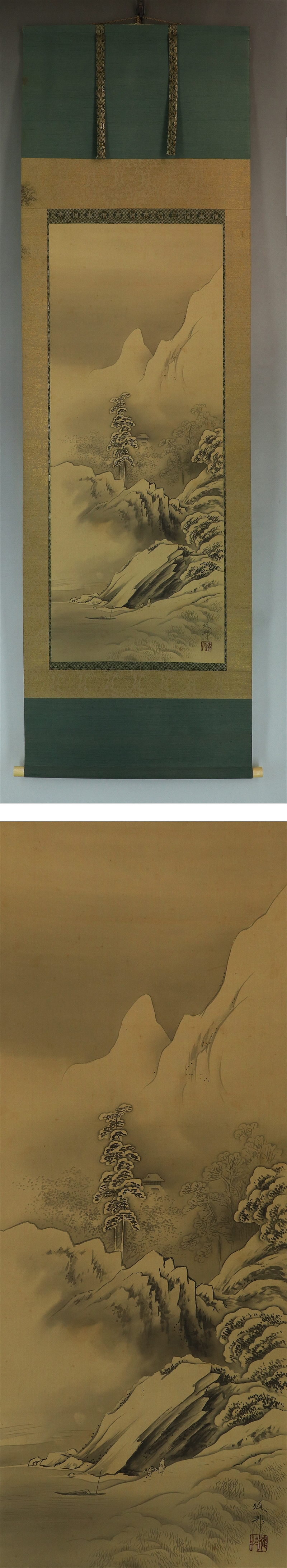| №2303167【模写】橋本雅邦【雪景山水図】◆絹本◆合箱◆掛軸 | |