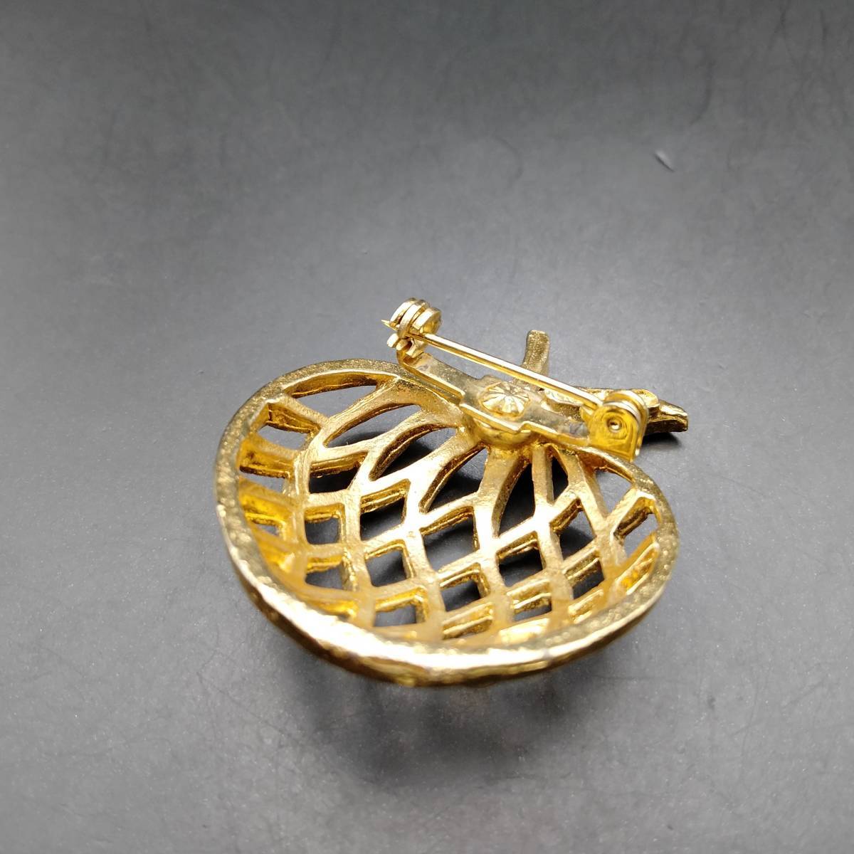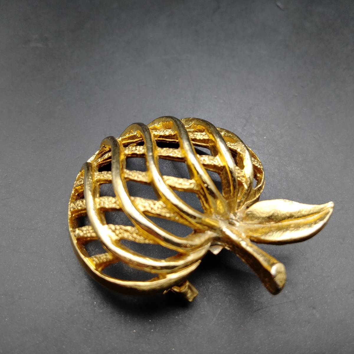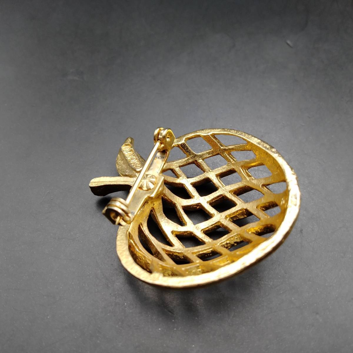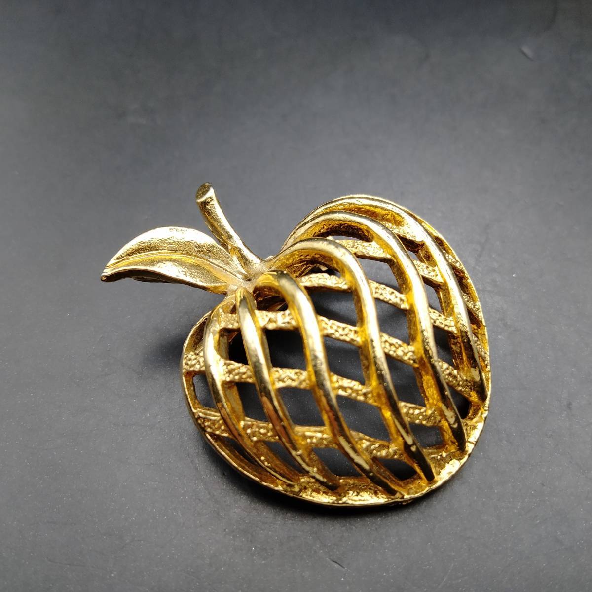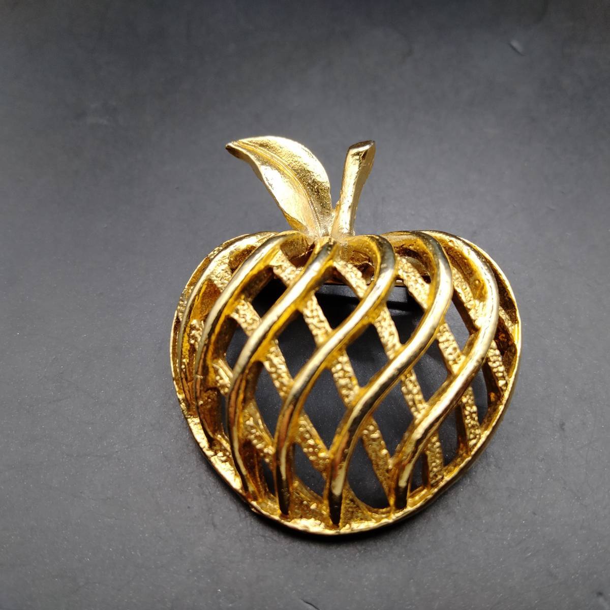 GERRY'S リンゴ 果物 モチーフ オープンワーク 透かし ゴールドトーン ビンテージ ブローチ 昭和レトロ コスチューム ジュエリー 輸入 7S-E