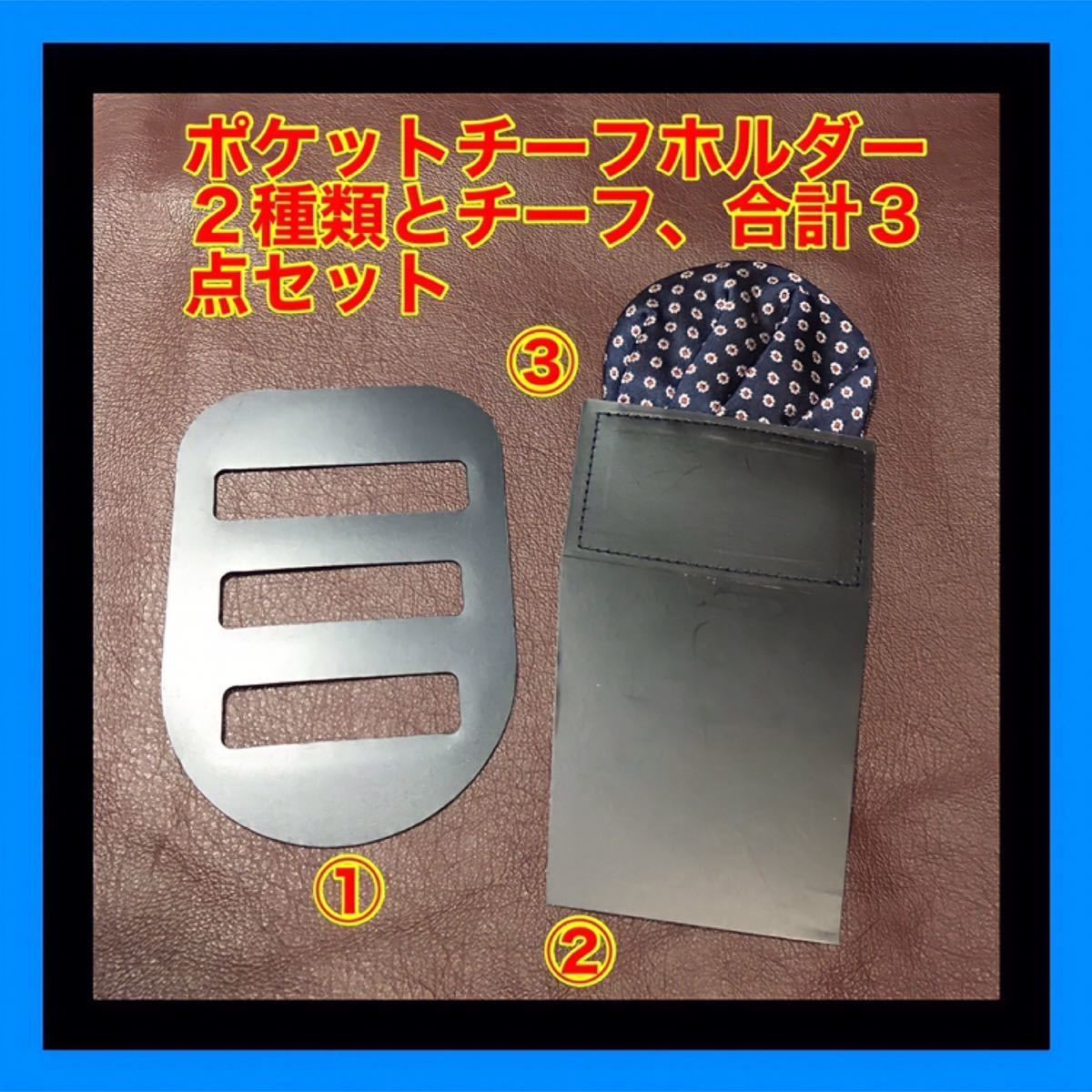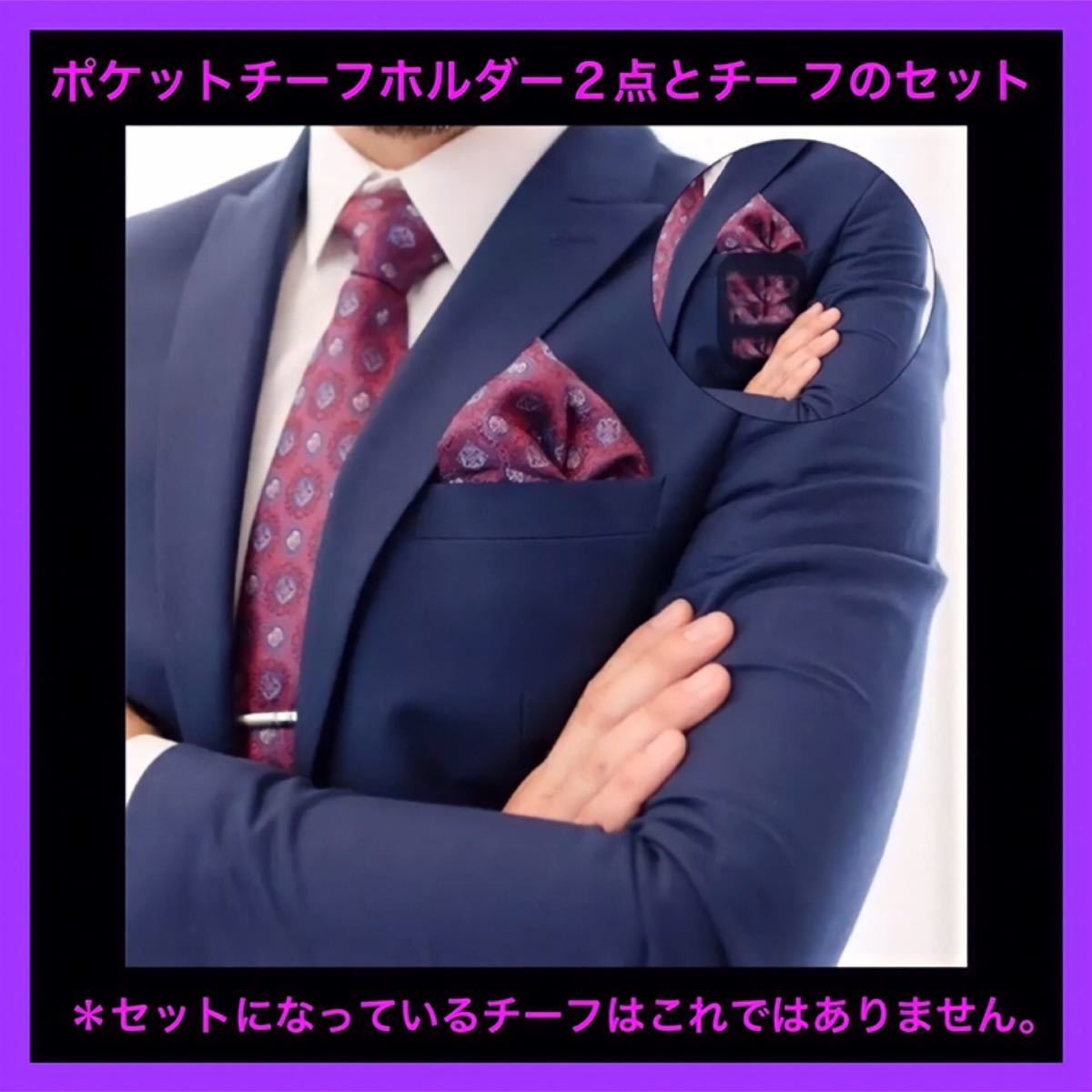 ポケットチーフホルダー2種類とチーフのセット。便利でオシャレです。送料無料。数量限定の販売です。よろしく御願い致します。