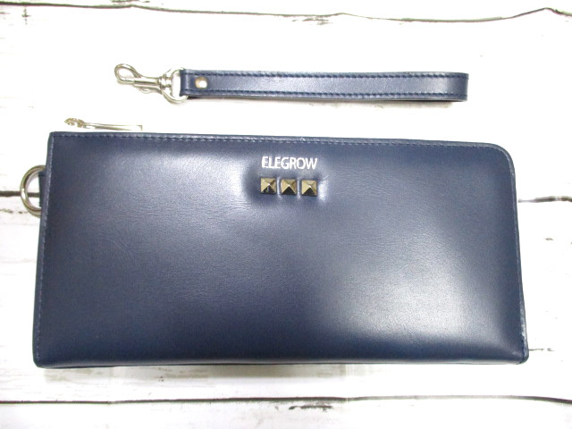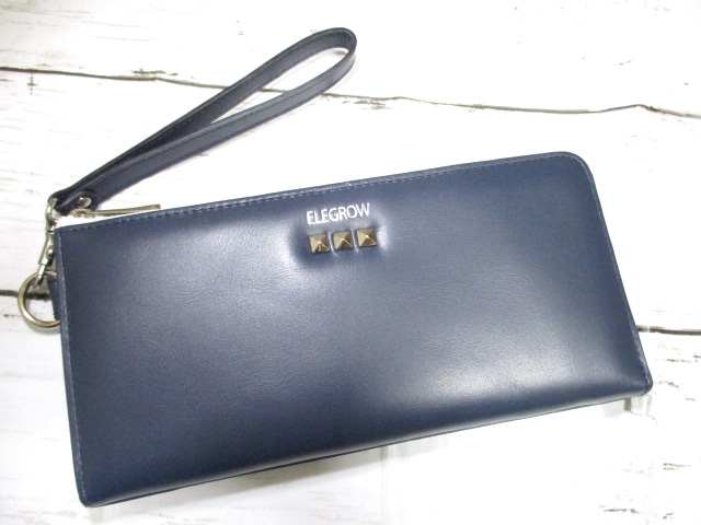 格安 半額以下 新品 SALE 財布 レディース 長財布 L字ラウンド クラッチバッグ Elegrow 本革 スリム 洗練された大人のデザイン ネイビー