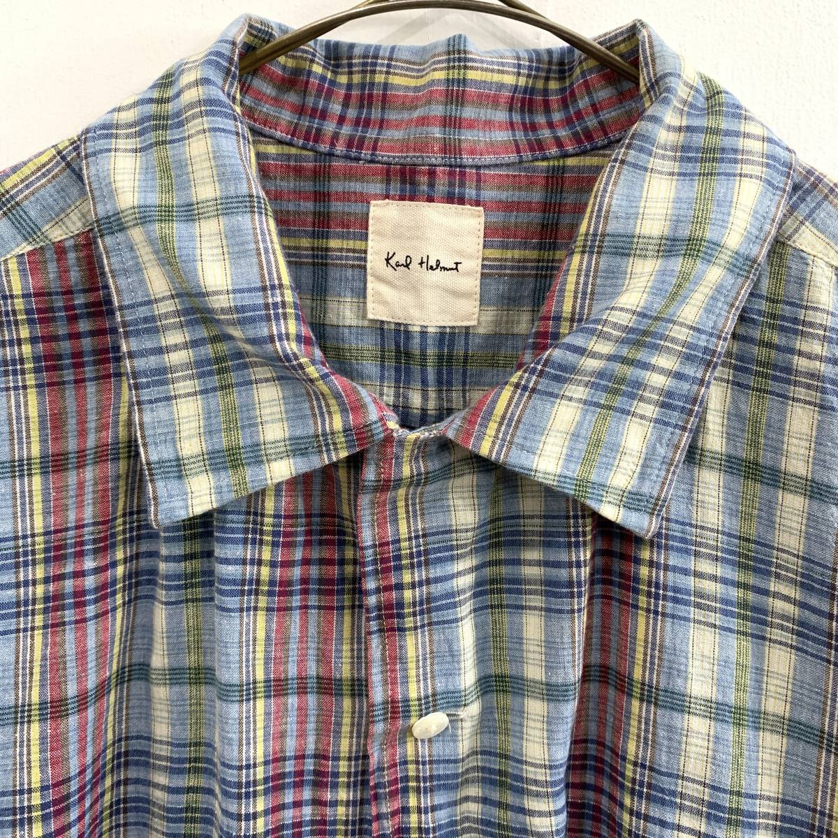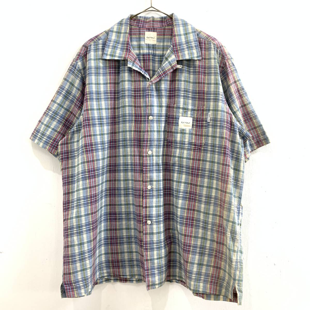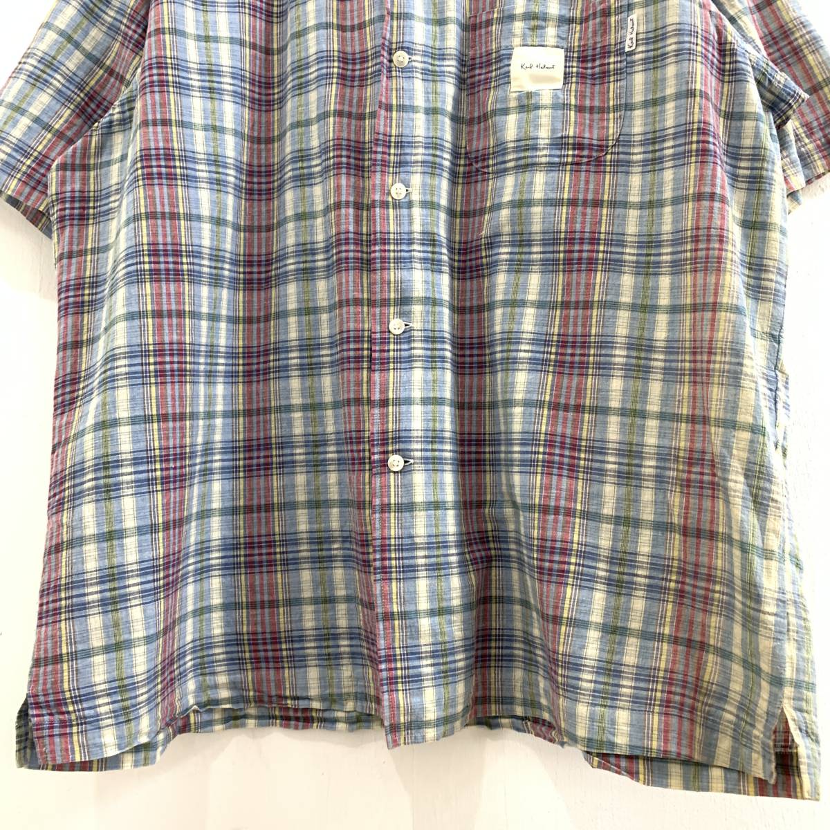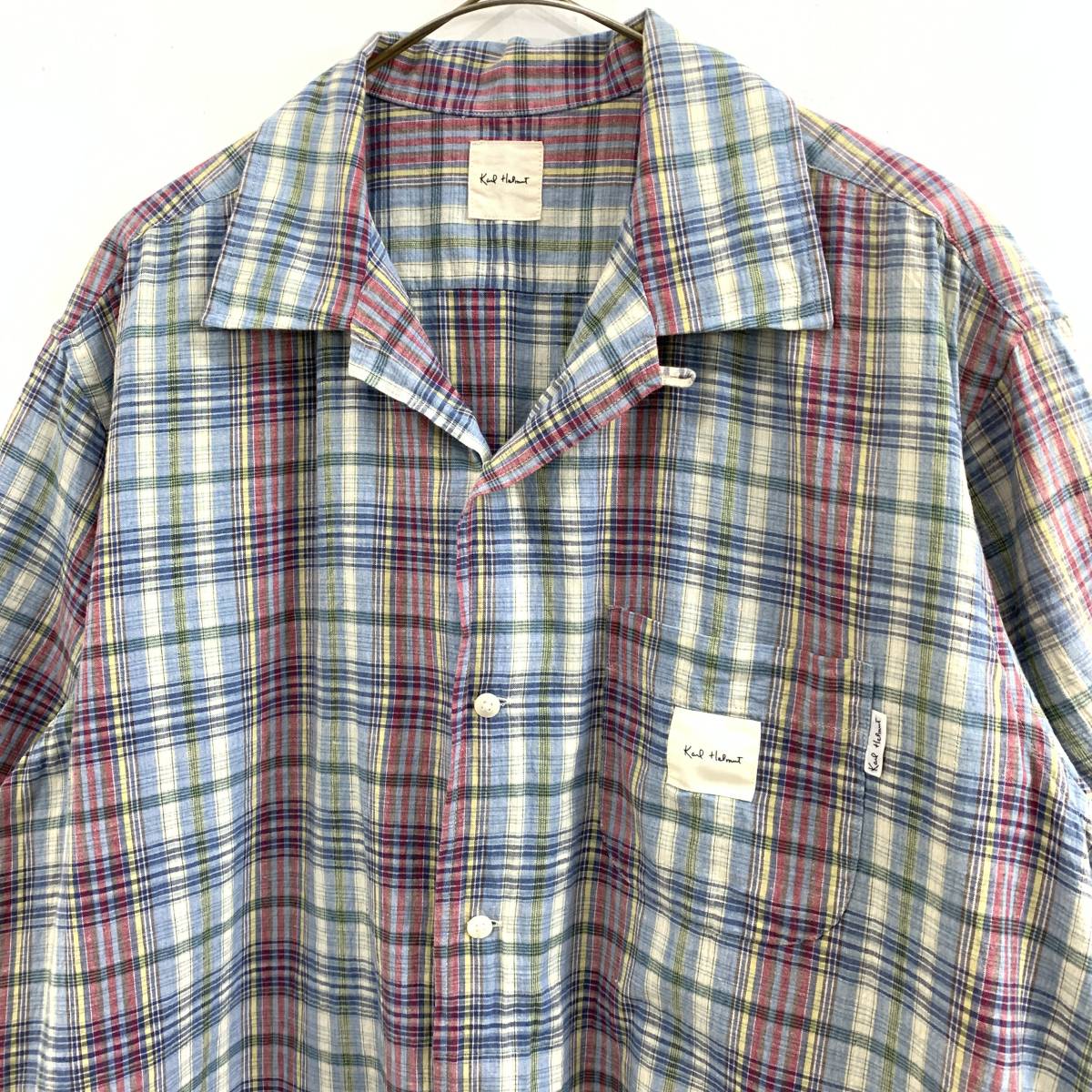 ☆Karl Helmut カールヘルム 90s VINTAGE ピンクハウス チェック柄 半袖オープンカラーシャツ 綿100% sizeL【レターパックプラス郵送可】C
