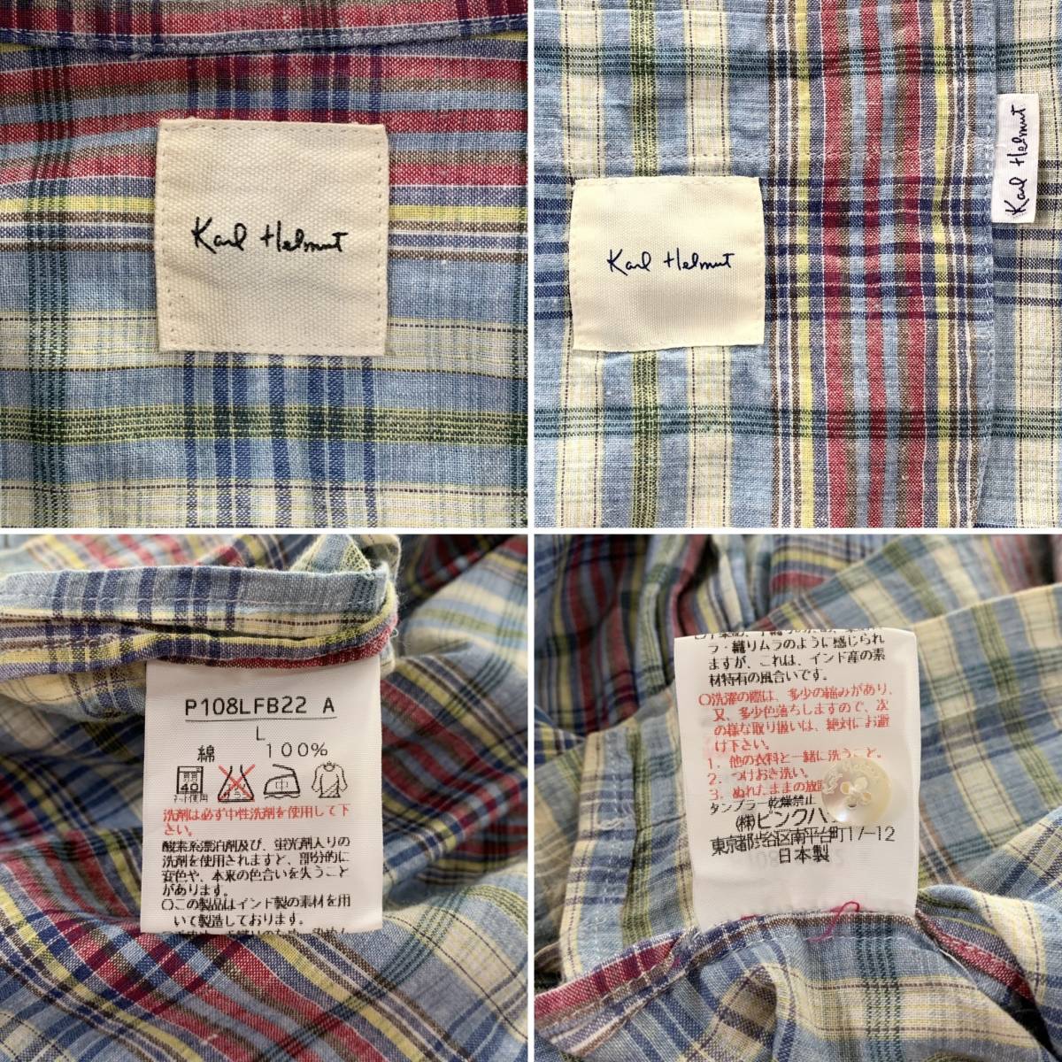 ☆Karl Helmut カールヘルム 90s VINTAGE ピンクハウス チェック柄 半袖オープンカラーシャツ 綿100% sizeL【レターパックプラス郵送可】Cの出品です。