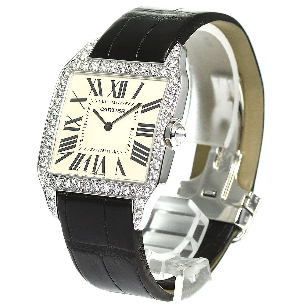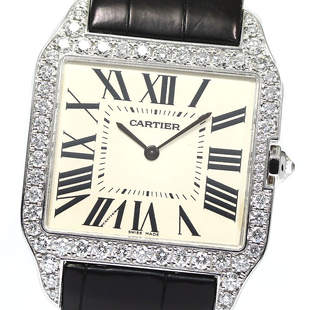 カルティエ CARTIER WH100651 サントスデュモンLM K18WG ダイヤベゼル 手巻き メンズ_757025