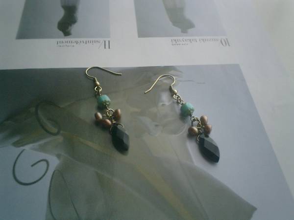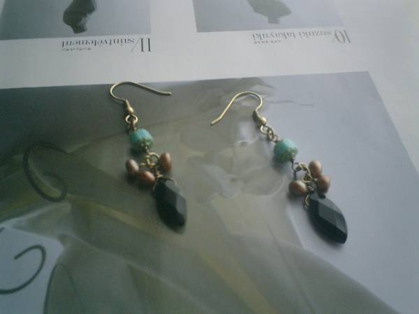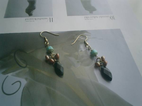 秋のヒロイン・・シリーズです♪黒の美学・・シックなオニキスのピアスです♪カットが美しいマーキスカットのオニキスは8×16ミリ位です♪5ミリ位のブロンズ色の淡水パールとターコイズ色のデザインチェコを合わせてアンティークモダンな表情です♪♪長さは全長5.5センチ位です♪イヤリングへの変更も出来ます♪♪お揃いのネックレスやブレスレットも出品しています♪シンプルで飽きのこないいつまでも着けられるデザインを考えて作りました!ハンドメイドをご理解頂いてノークレーム、ノーリターンでお願いします