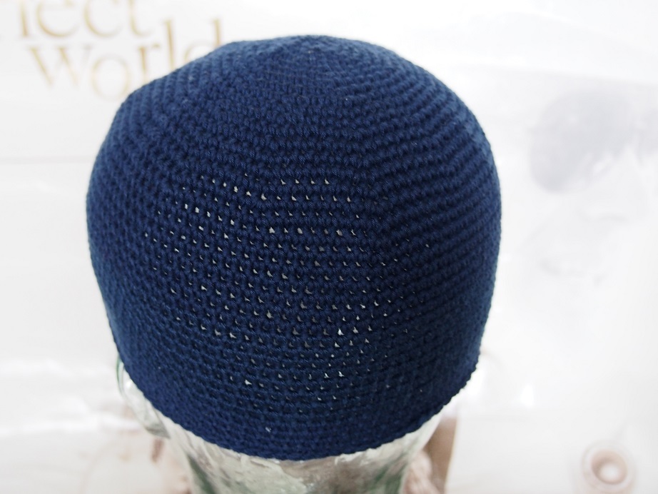 新品オリジナル手編みイスラム帽子紺色#こま編み#ハンドメイド#ダンサーミュージシャン衣装#アウトドア#キャンプ#男女兼用#送料無料