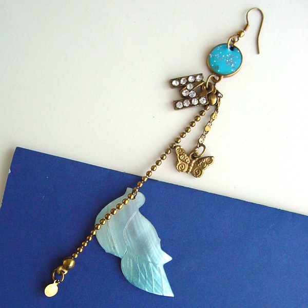 フランス Marc LABAT 鳥モチーフの片耳ピアス エナメル&シェル