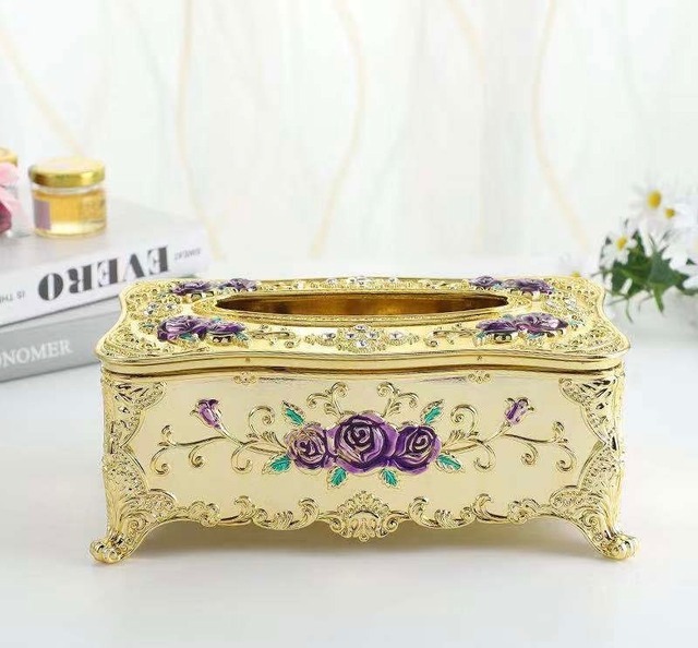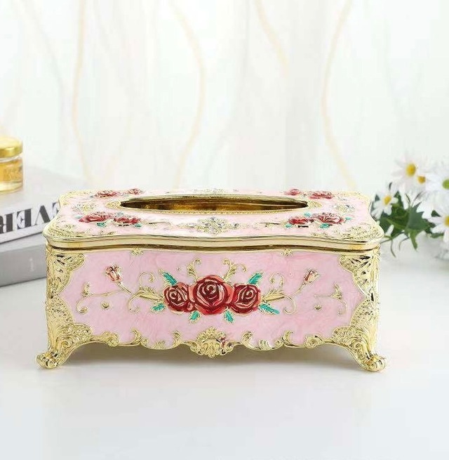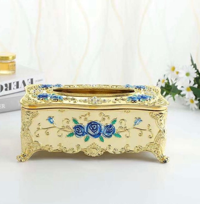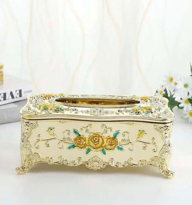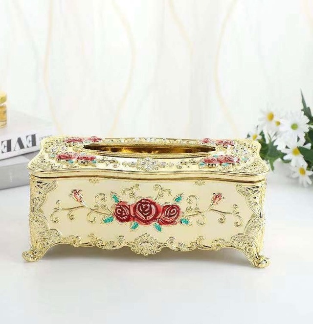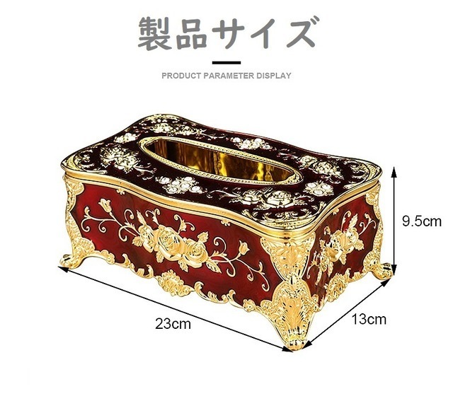 お洒落な 高級 ヨーロッパ風 薔薇デザイン ティッシュボックス ティッシュケース 猫足 ロココ調 北欧 雑貨 インテリア ゴールド 家具
