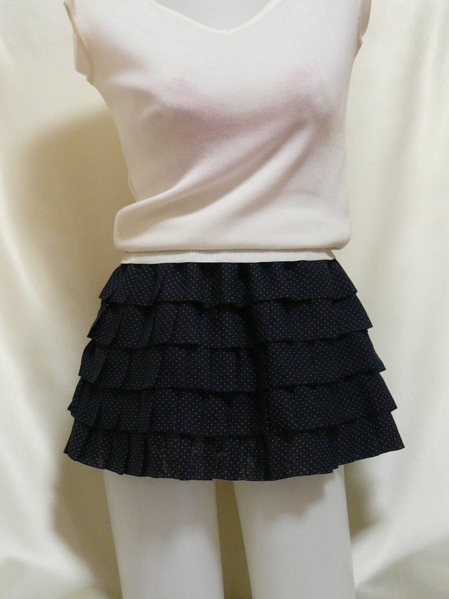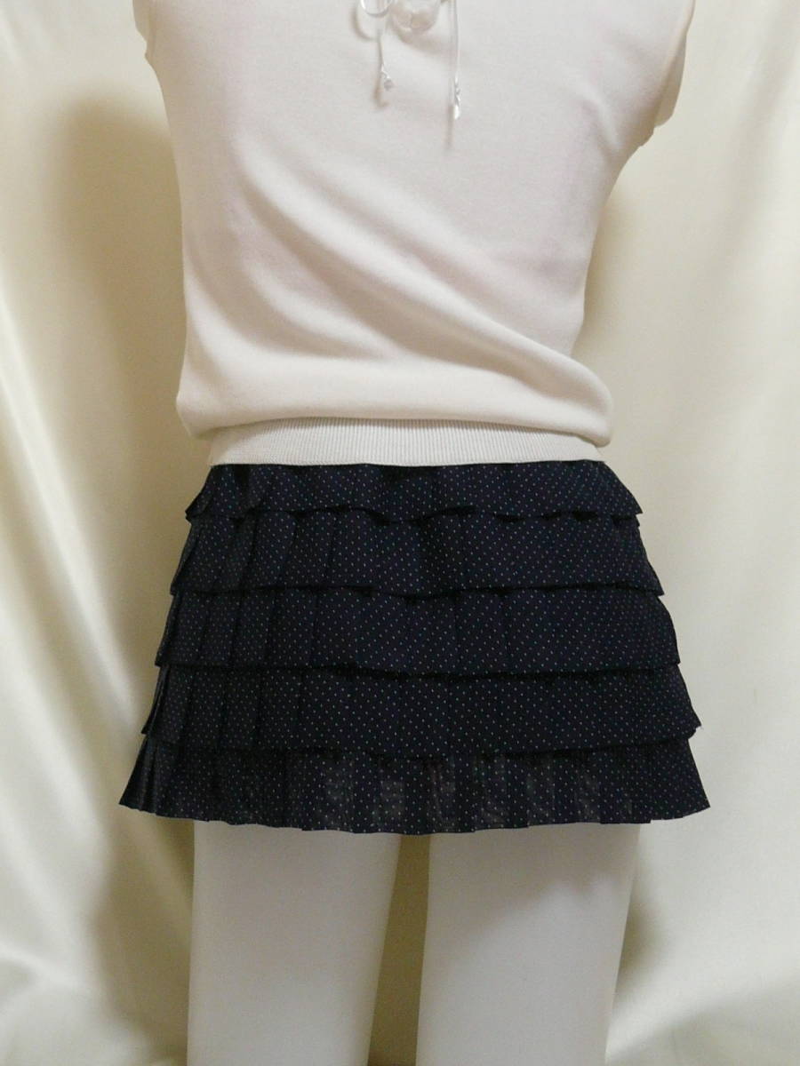 ♪♪濃紺地ドット柄の超マイクロミニ☆5段のプリーツ^^♪♪
