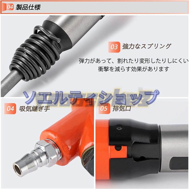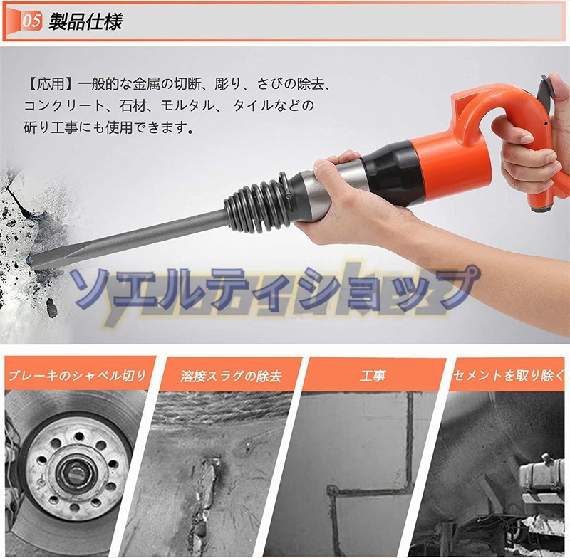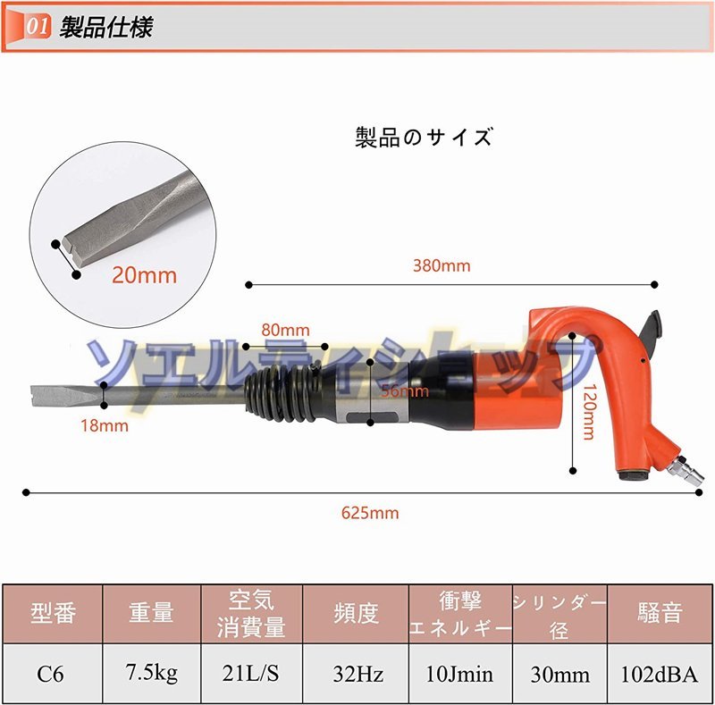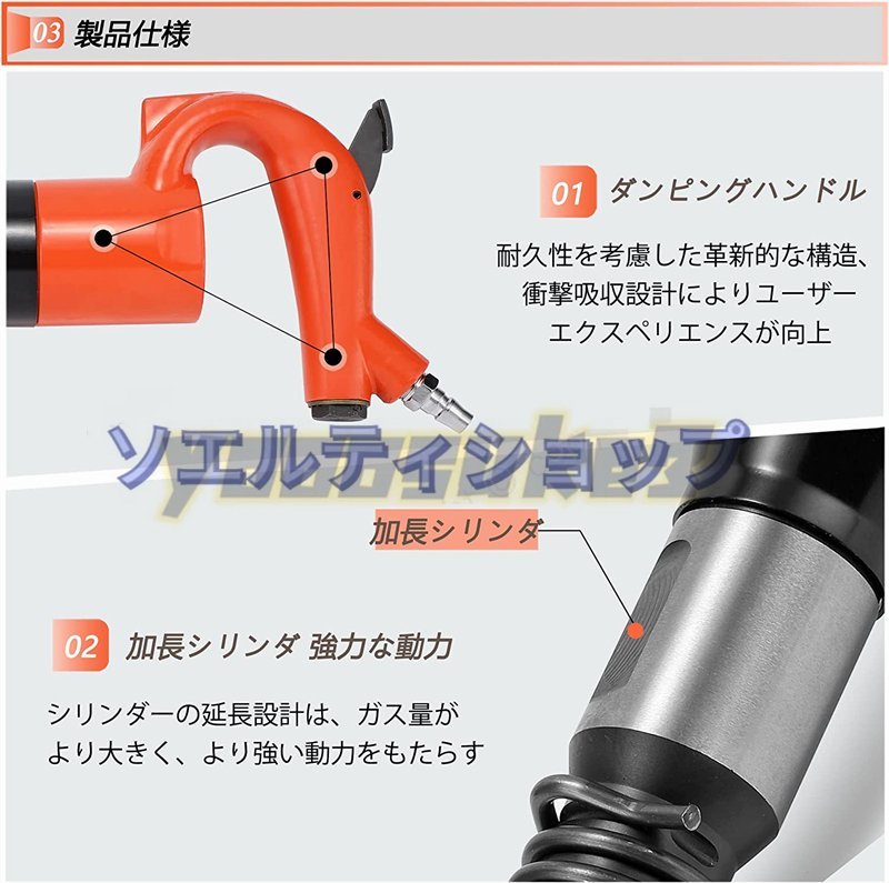 【仕様】材質:高硬度合金 衝撃エネルギー:10J/min 空気消費量:21L/S min、頻度:32Hz/min シリンダー径:30mm