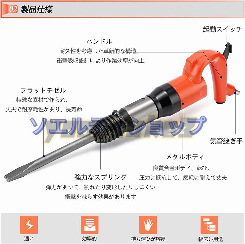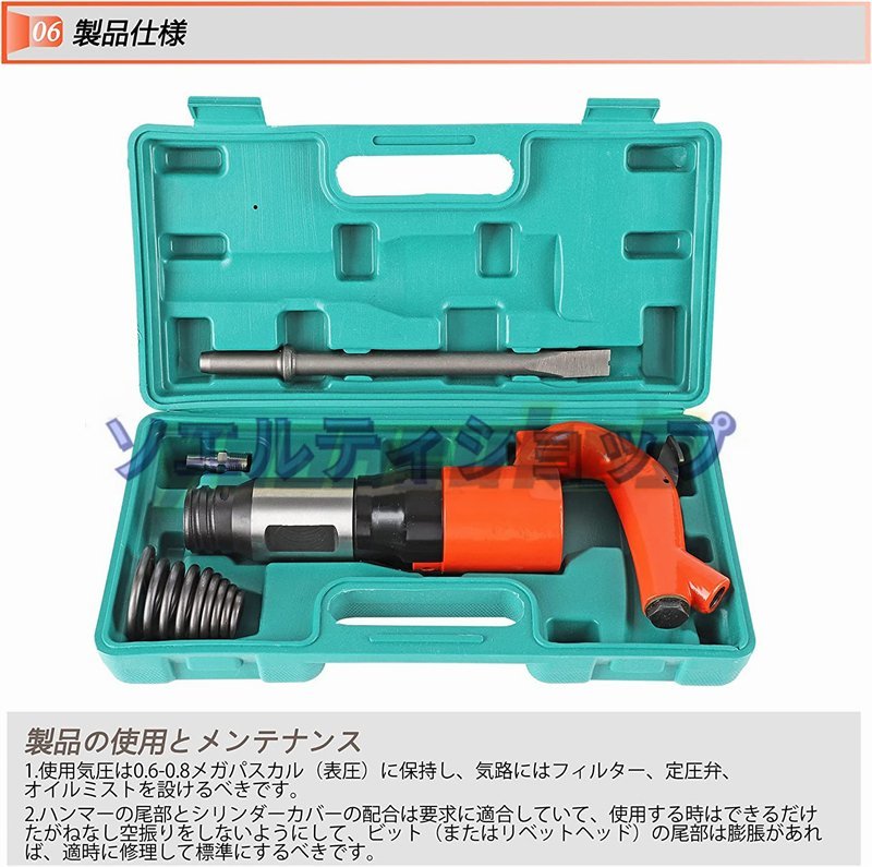実用品★エアーハンマー 空気圧ハンマー ポイントチゼル/フラットチゼル コンクリート モルタル 石材 ハツリ作業 耐摩耗性 専用ケース付き
