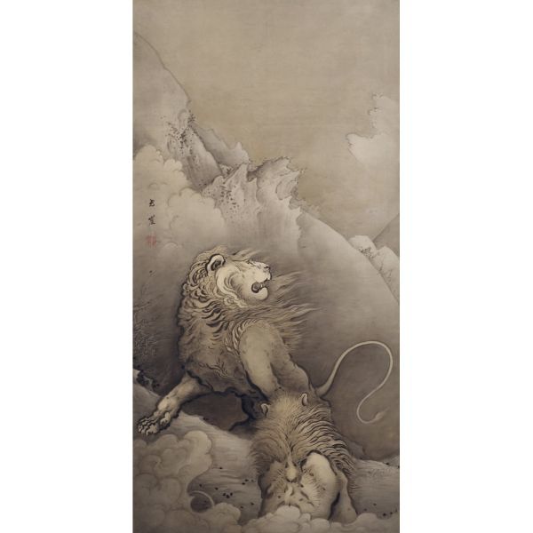 【フルサイズ版】狩野芳崖 獅子図 1886年頃 東京藝術大学 近代日本画の父 壁紙ポスター 302mm×603mm はがせるシール式 003S2
