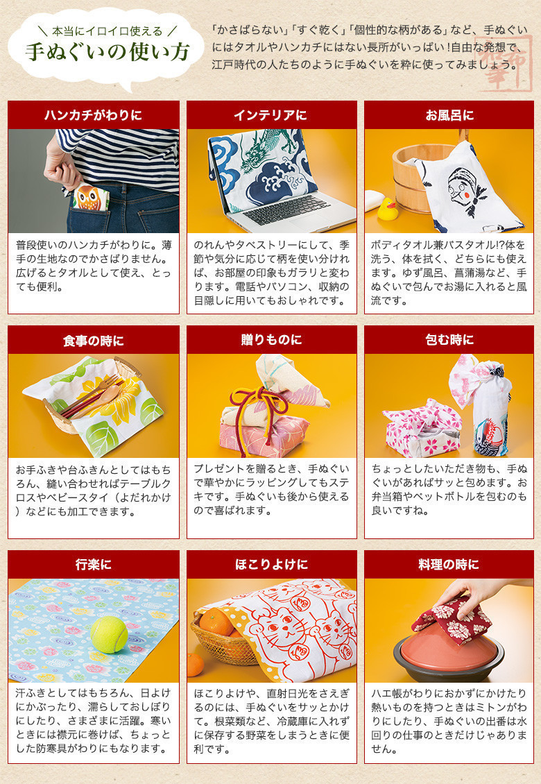 明治時代から伝わる”そそぎ染め”という手作業で一本一本丹念に染め上げられた手ぬぐいです。