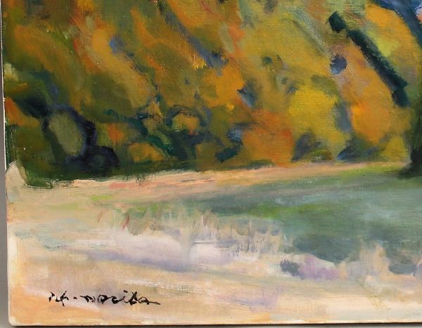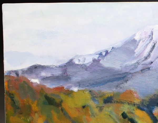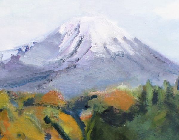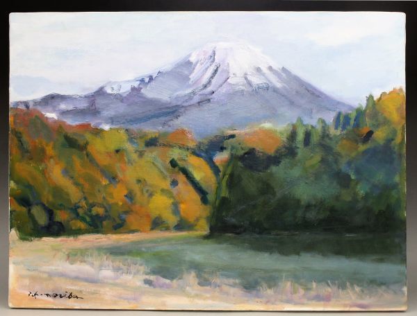 BM-124 油絵 森田秀雄 「大山(おかなり池)」 P10号 東光会 会員 状態良好 山陰 鳥取 風景画 伯耆 岡成池 額付属(同志舎 小公子 金)