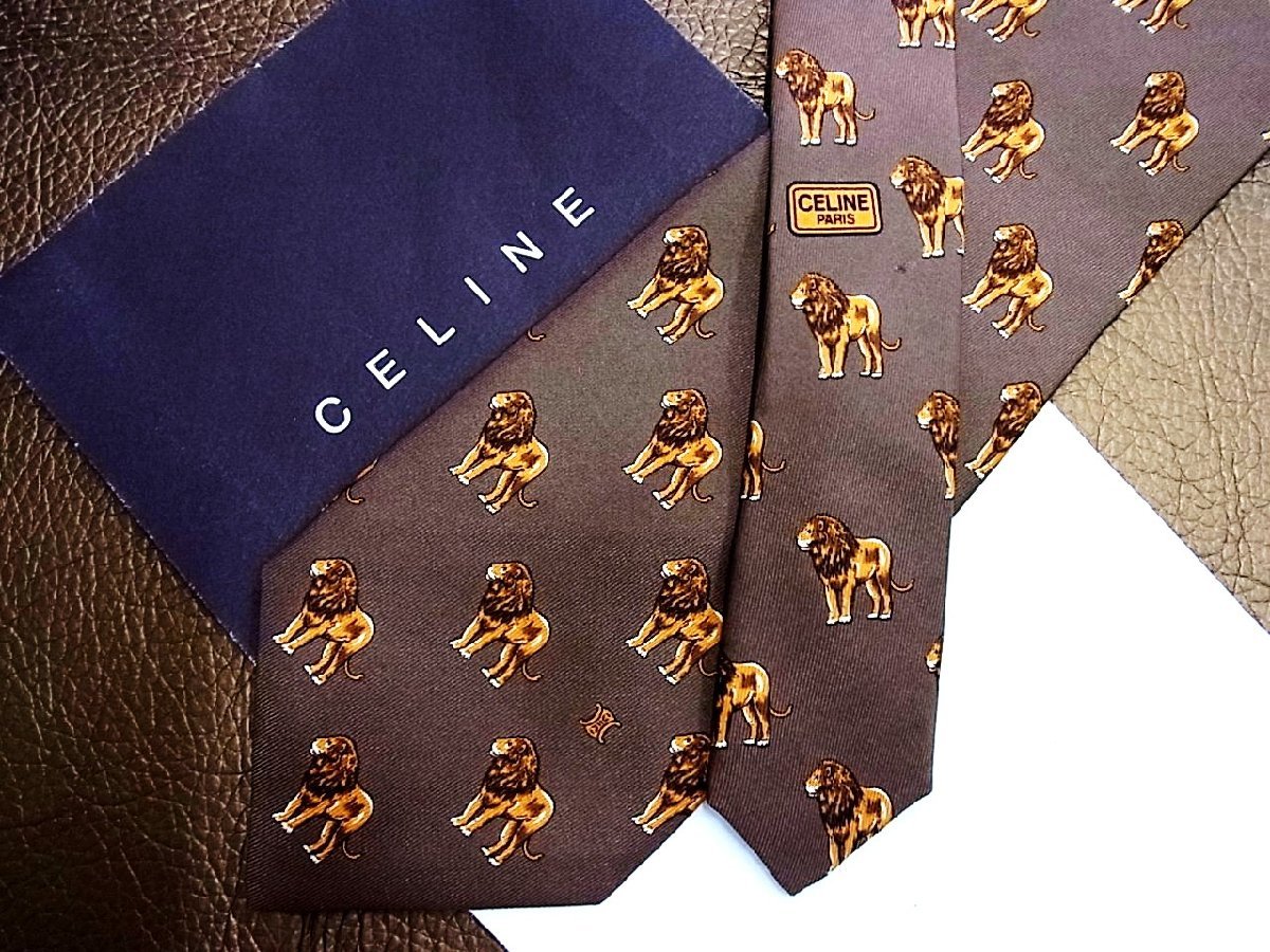 ★良品★3R04659【CELINE】セリーヌ「ライオン 動物 柄」ネクタイ