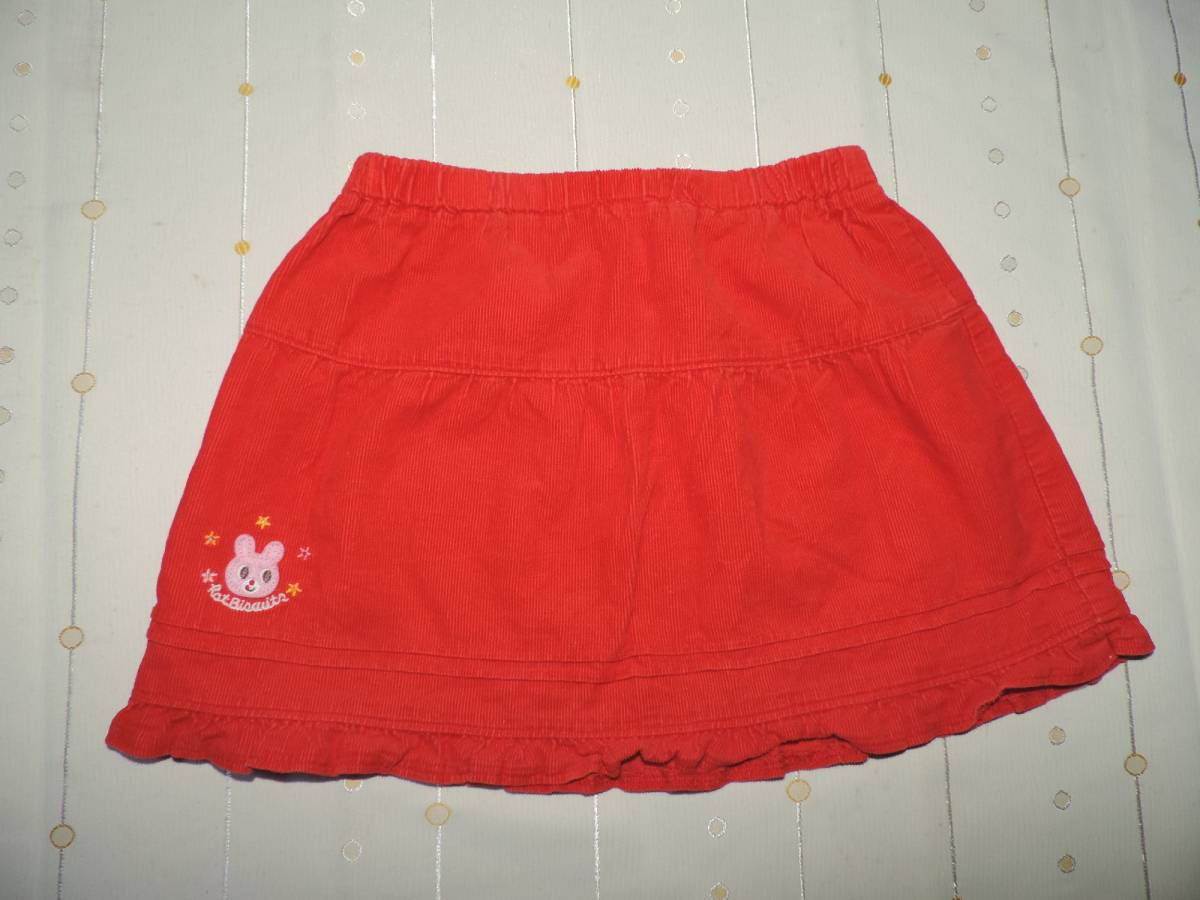☆ミキハウス☆ホットビスケッツの裾ロゴ刺しゅううさぎデザイン赤のコーデュロイ素材スカート☆90センチ☆