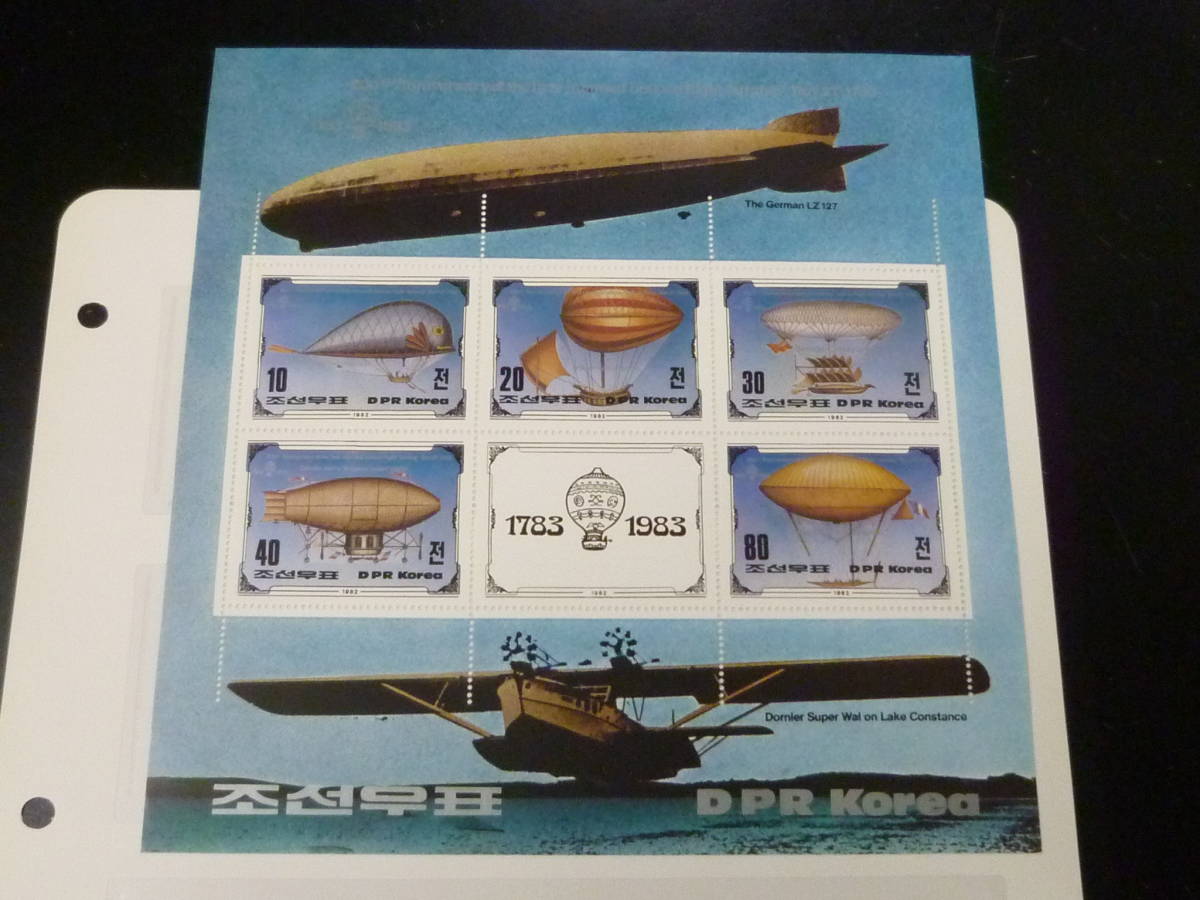23 A s/s№52 北朝鮮切手 有目打 1982年 SC#2245-50 気球 4種完・小型シート・タブ付5面シートレット 未使用NH・VF