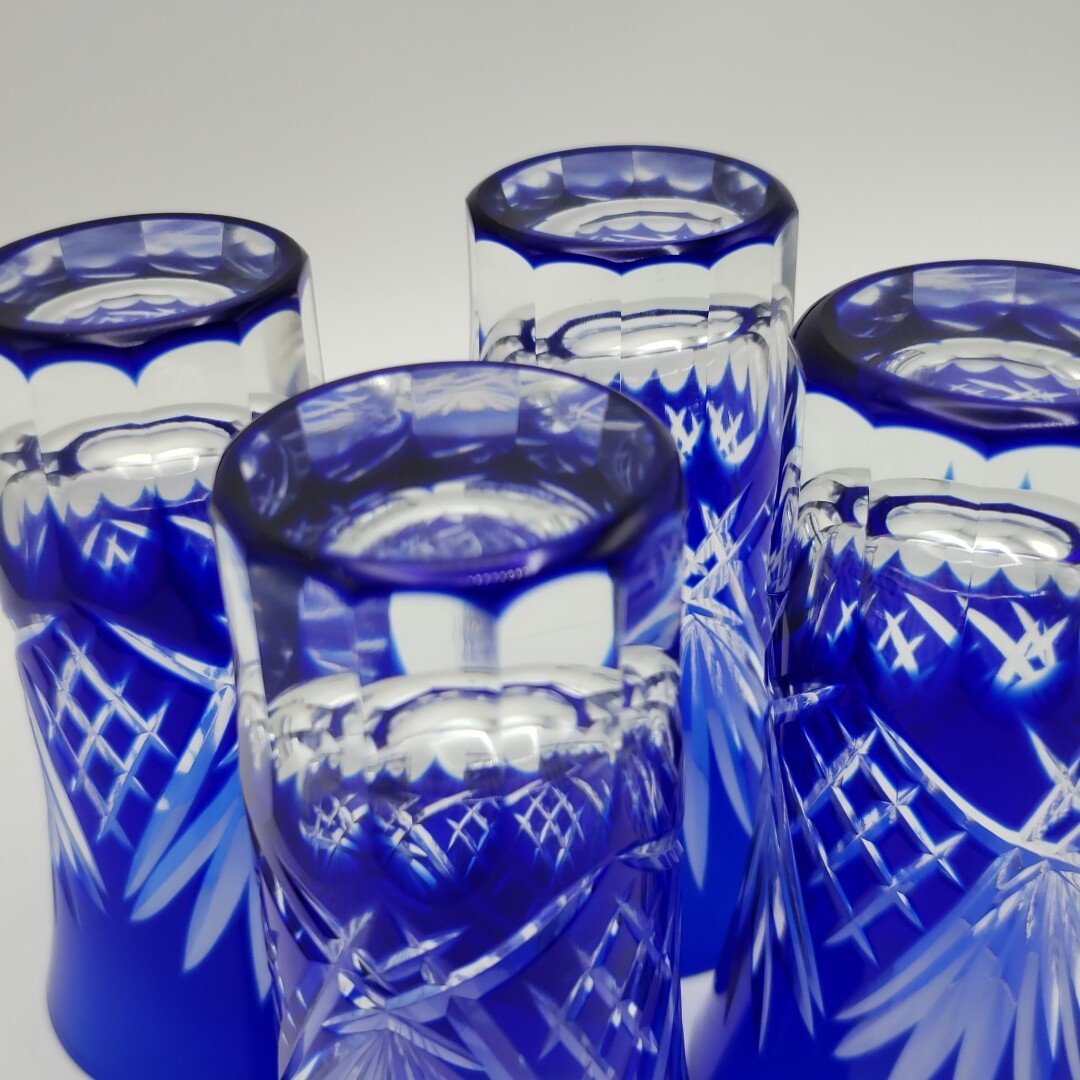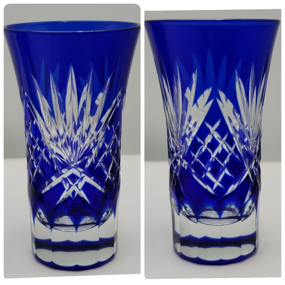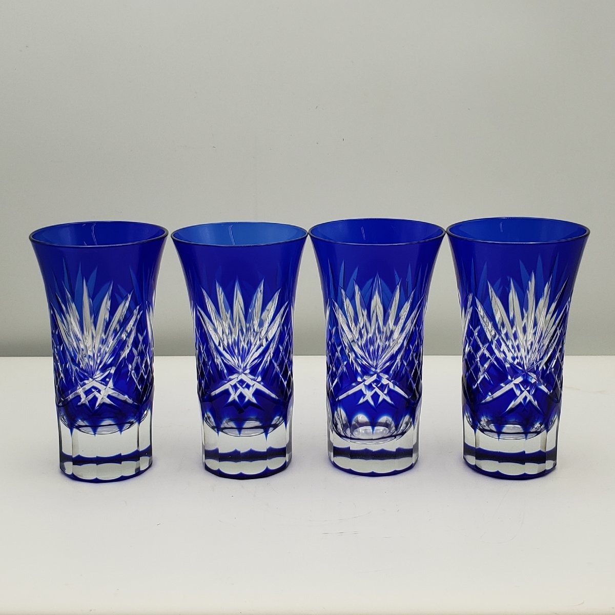 | 切子硝子 4客 φ5.8cm 高さ10.5cm ガラス工芸 グラス 冷酒グラス 青 切子グラス 硝子細工 硝子製品 来客用 | |