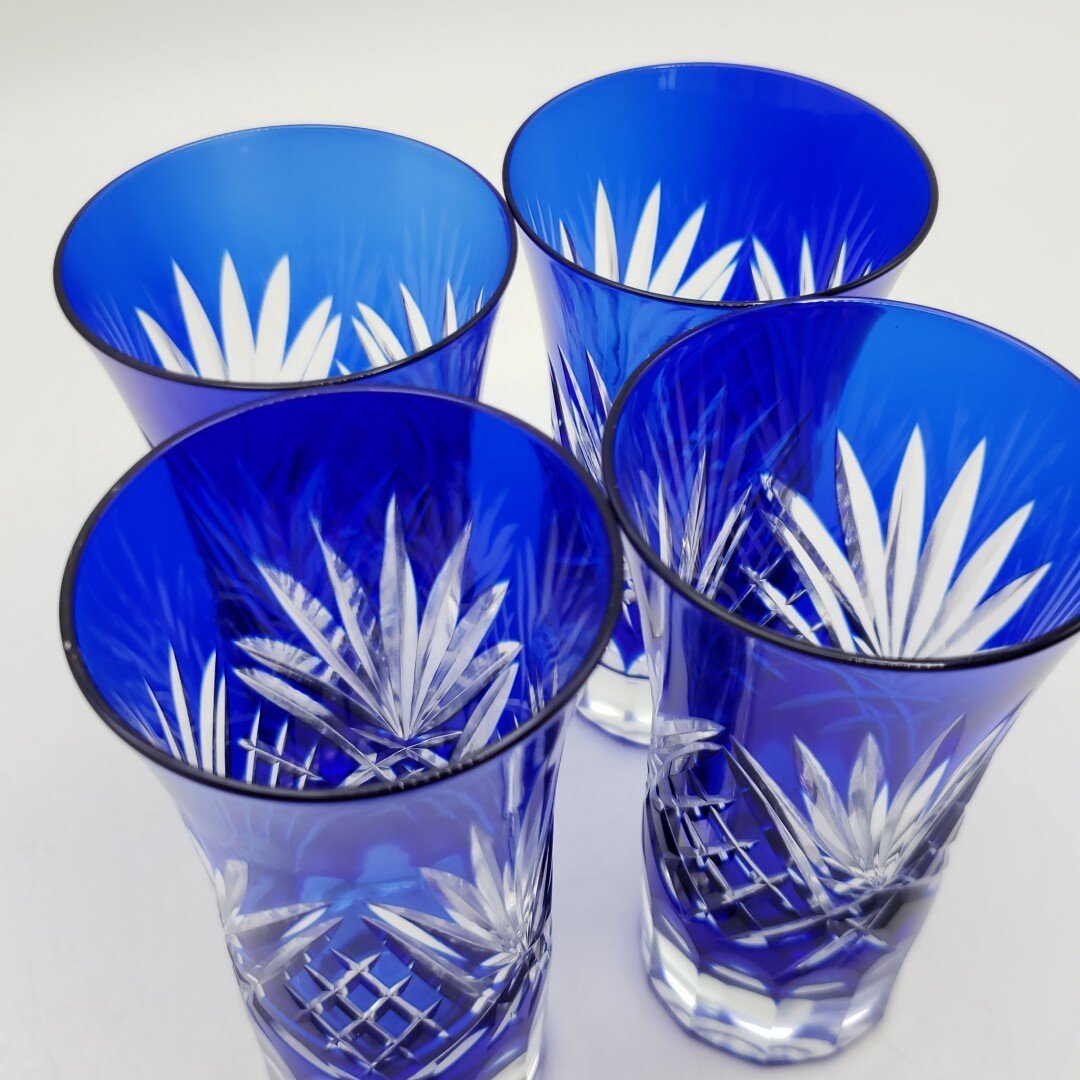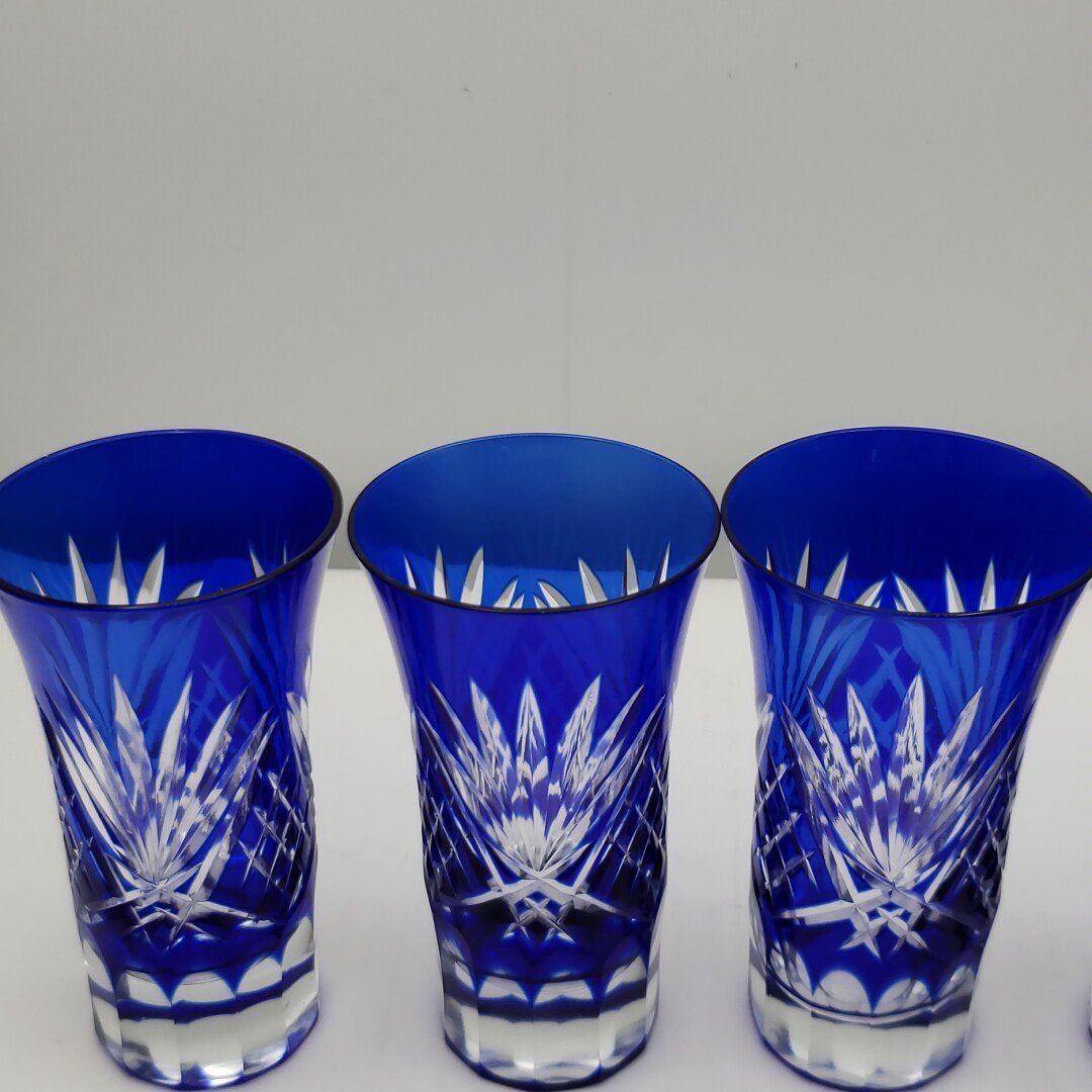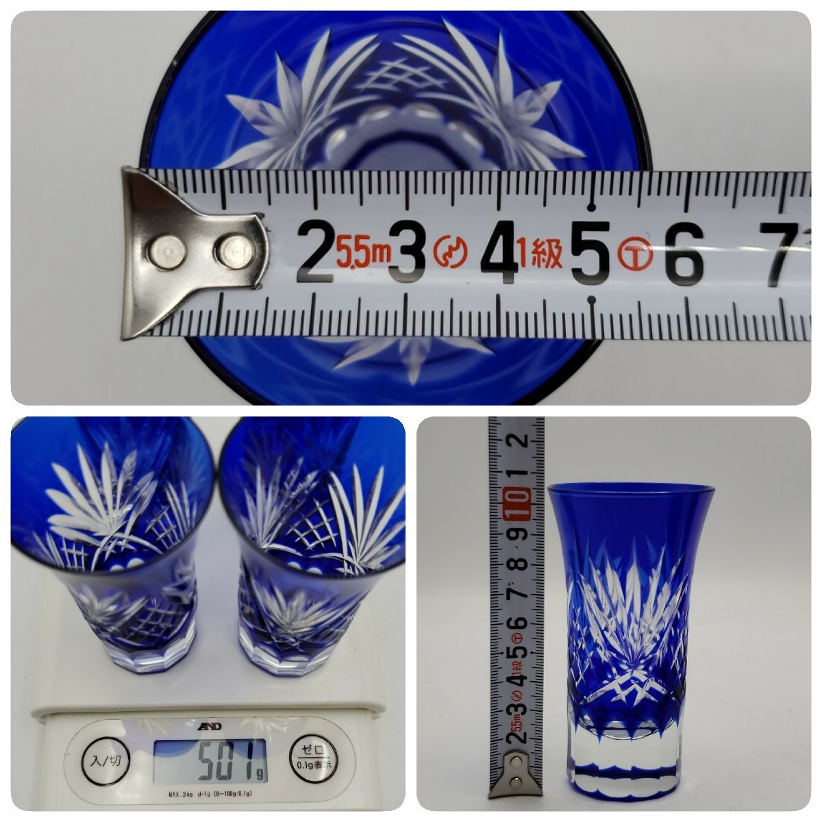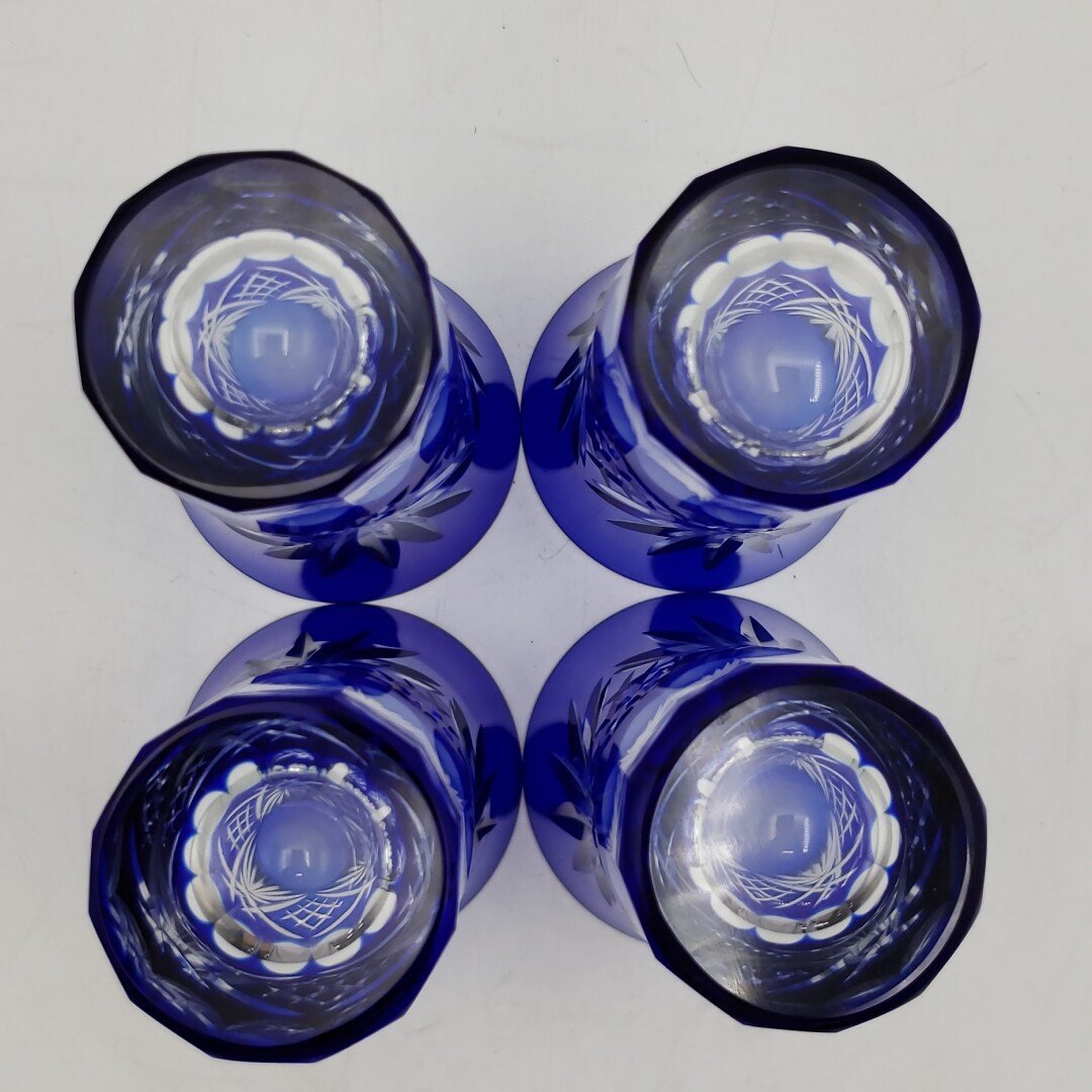 | 切子硝子 4客 φ5.8cm 高さ10.5cm ガラス工芸 グラス 冷酒グラス 青 切子グラス 硝子細工 硝子製品 来客用 | |