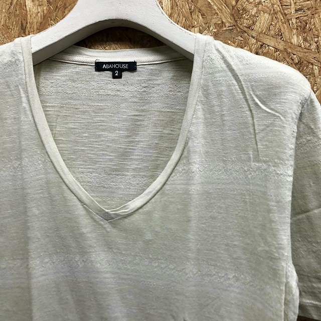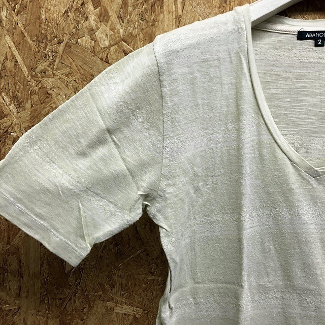 | 商品タイトル | ABAHOUSE アバハウス サイズ2 メンズ Tシャツ 半袖 深Vネック カットソー ジャカード ネイティブ柄 ライトヘザーグリーン系 薄杢黄緑 |