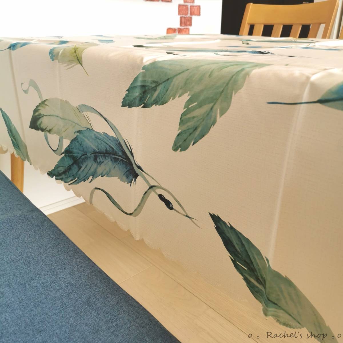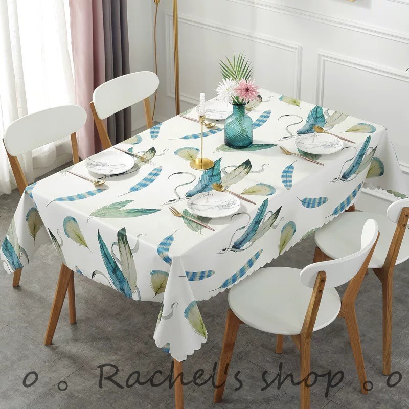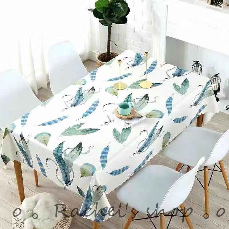 テーブルクロス②羽根 ブルー 撥水 PVC シンプル 模様替え ダイニング
