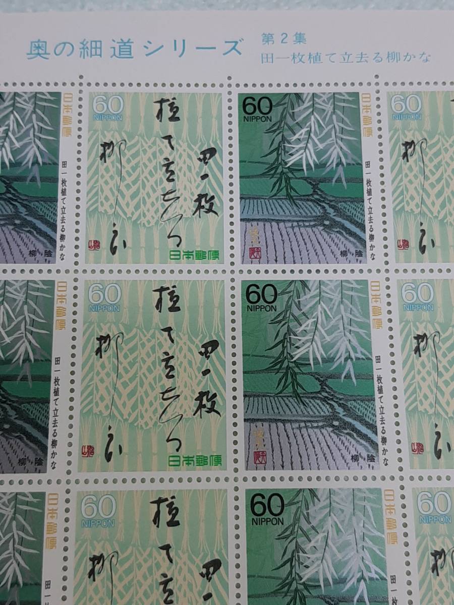 奥の細道シリーズ 第2集 田一枚植て立去る柳かな 1987 切手シート1枚