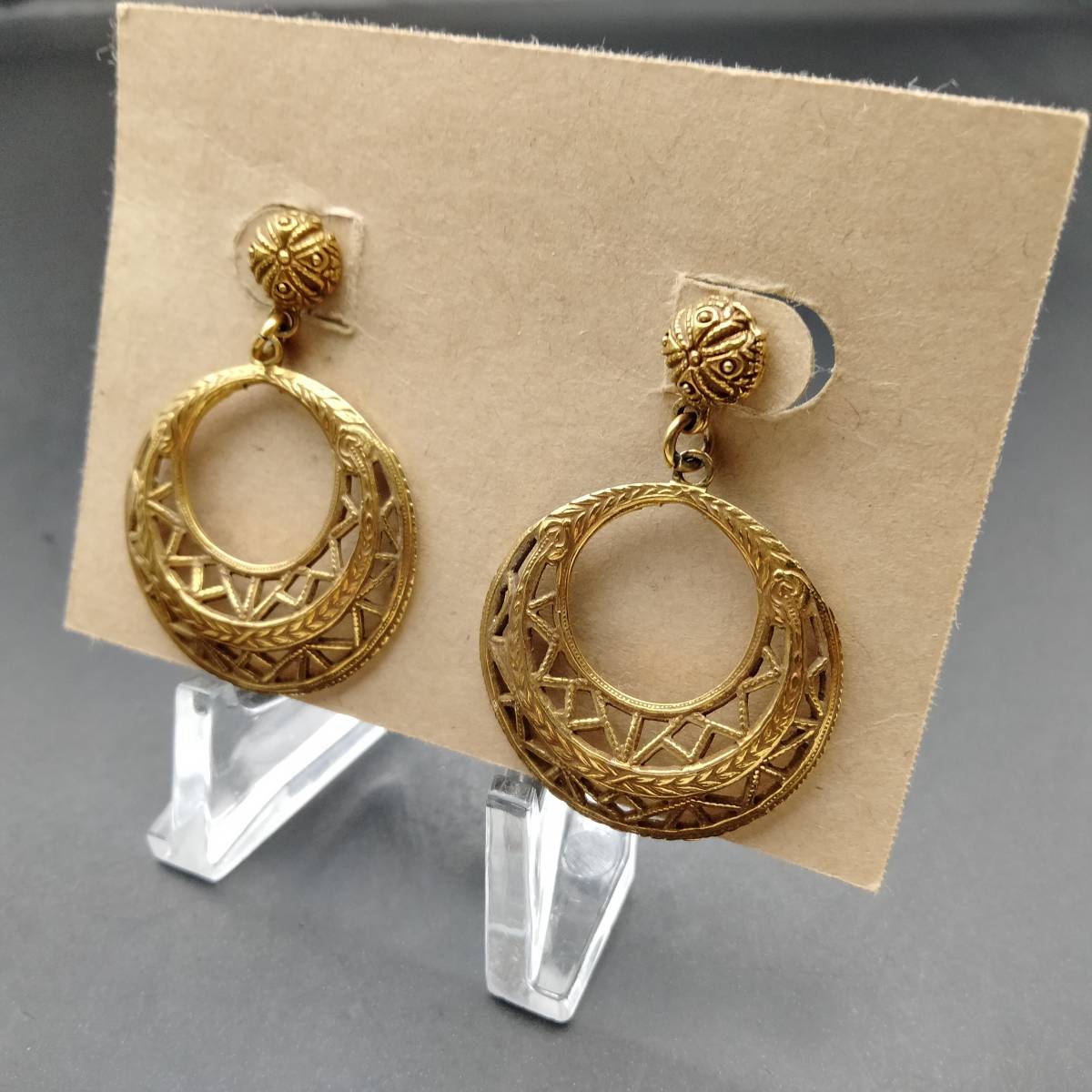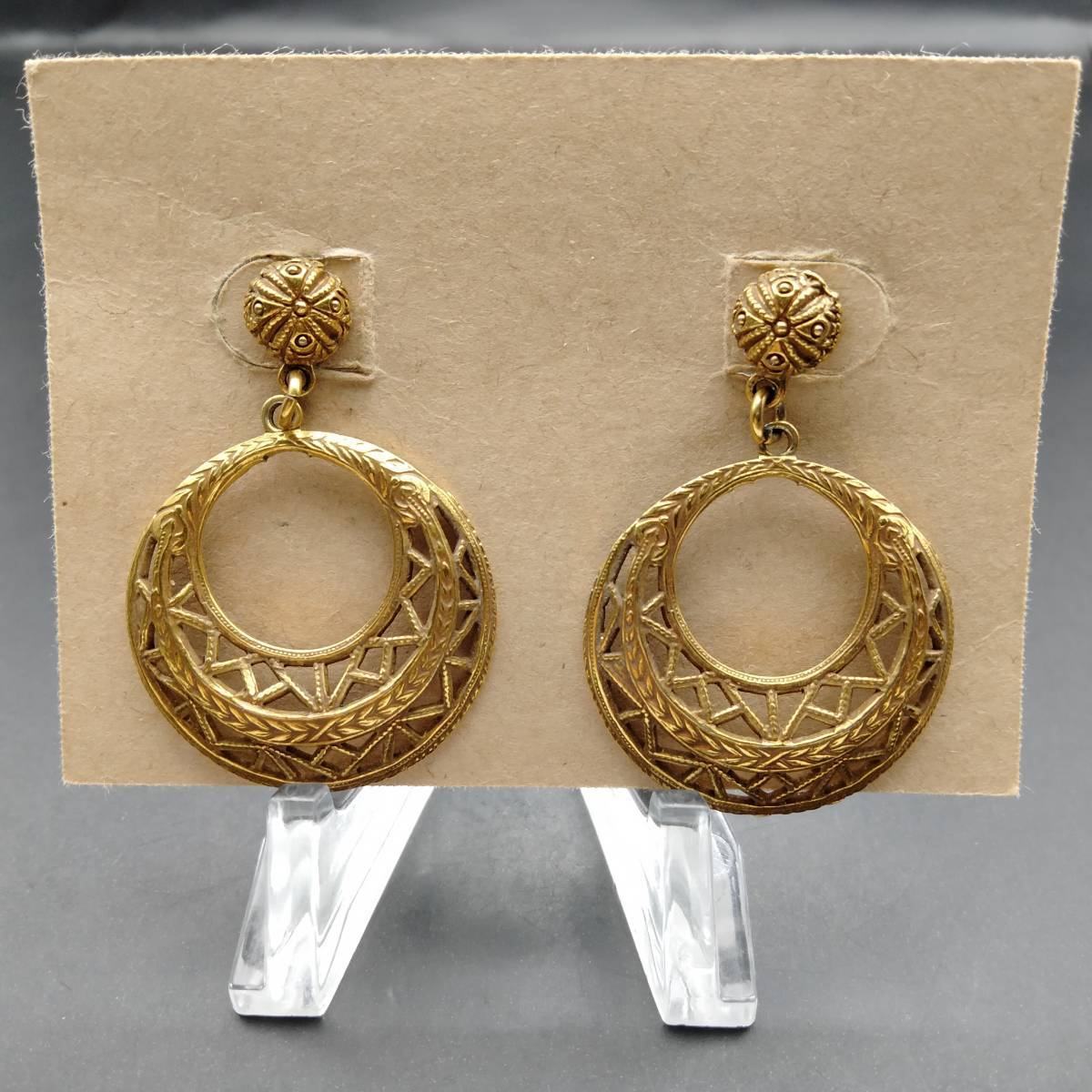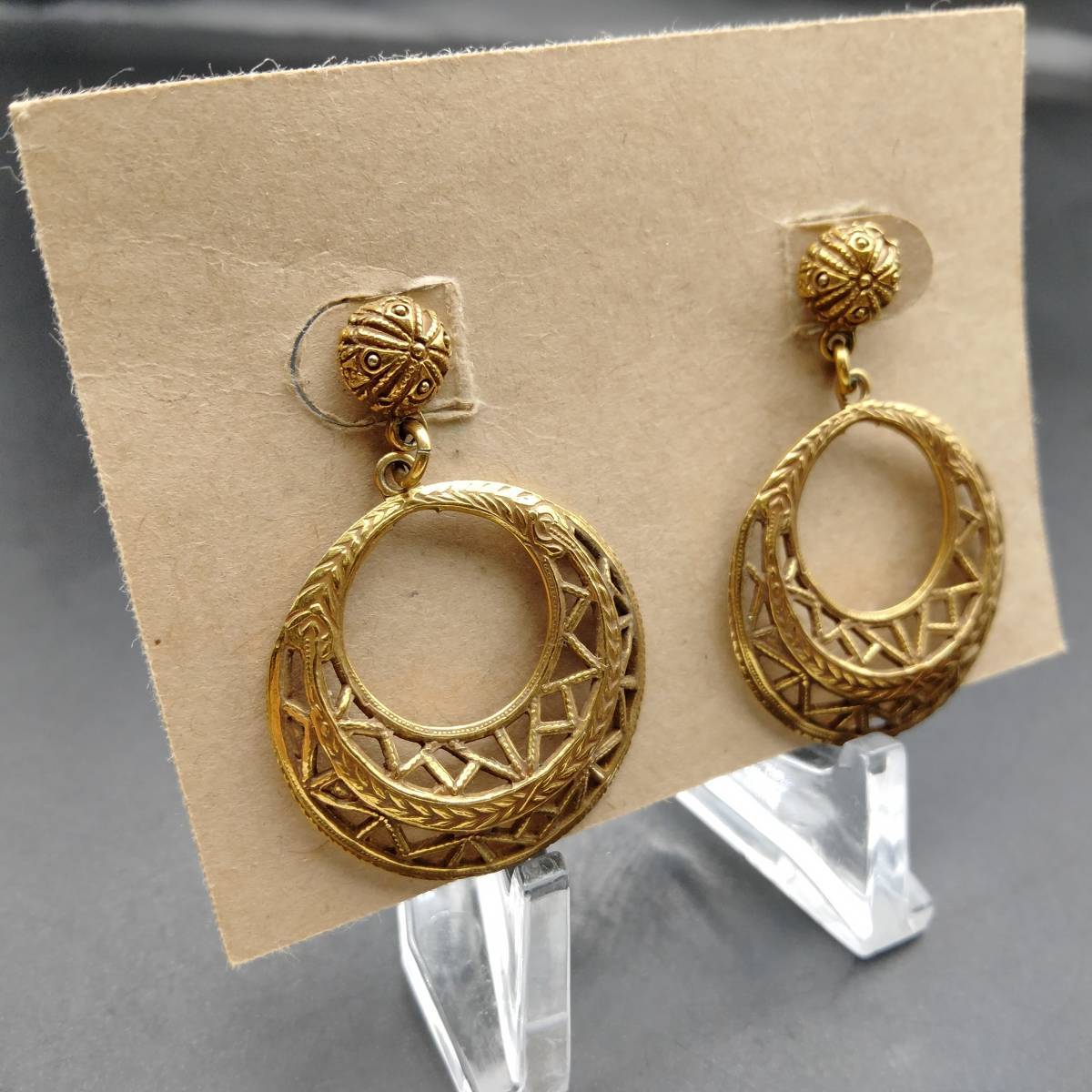 オープンワーク リング エスニック デザイン ゴールドトーン ビンテージ ピアス イヤリング 昭和レトロ コスチューム ジュエリー 輸入 7S-T