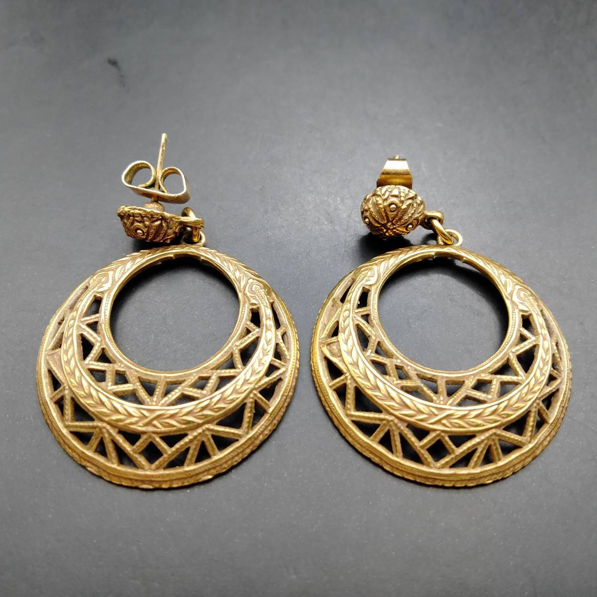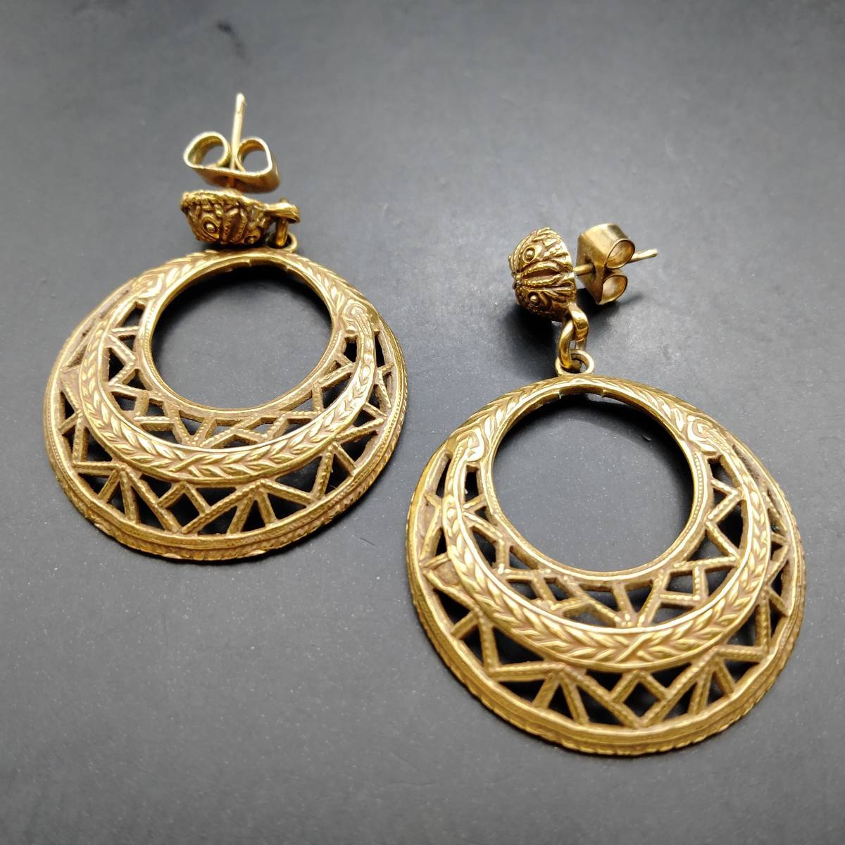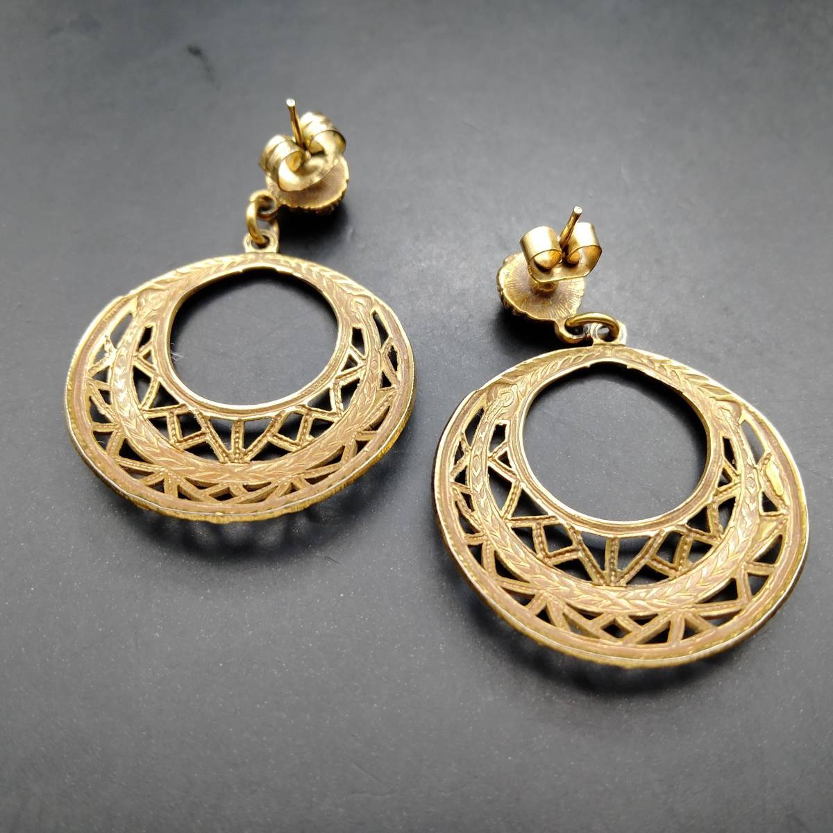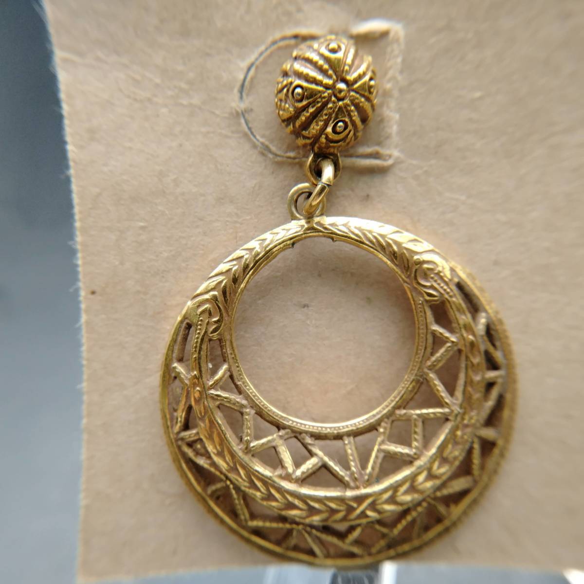オープンワーク リング エスニック デザイン ゴールドトーン ビンテージ ピアス イヤリング 昭和レトロ コスチューム ジュエリー 輸入 7S-T