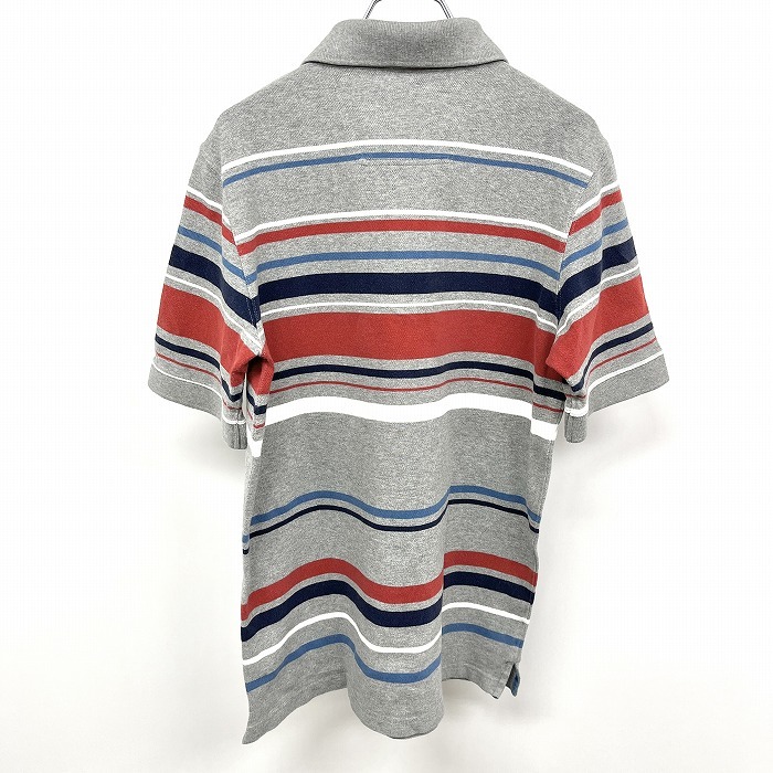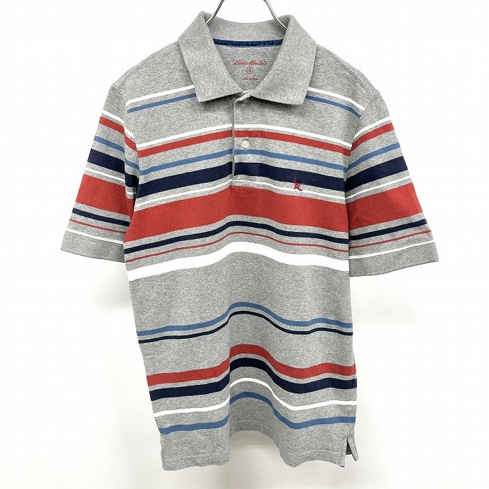 | 商品タイトル | エディーバウアー Eddie Bauer ポロシャツ 半袖 ボーダー 鹿の子 鳥の刺繍 カットソー 綿100% S ヘザーグレー 杢グレー×茶×紺×白 メンズ |