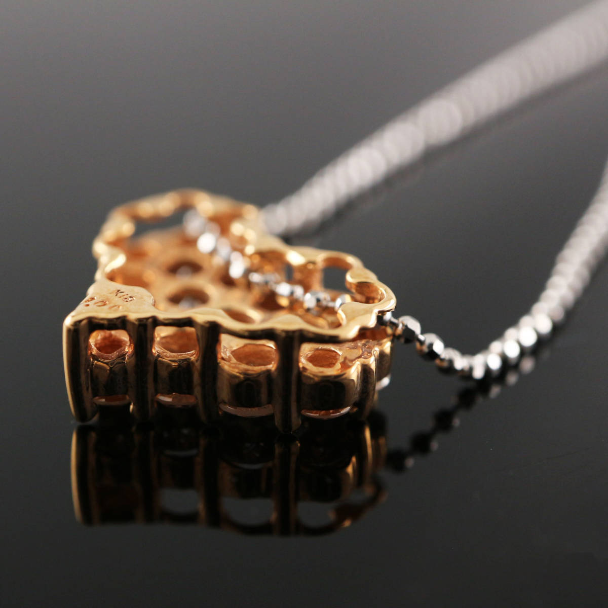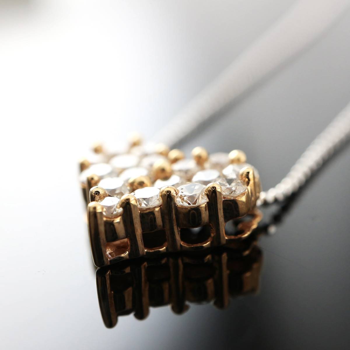 【コメント】:ハートモチーフの枠にテリのあるパヴェダイヤがたっぷりとあしらわれた豪華なパヴェダイヤネックレス。ダイヤはG〜Hカラー、I1、GDクラスのダイヤがセットされています。