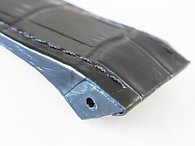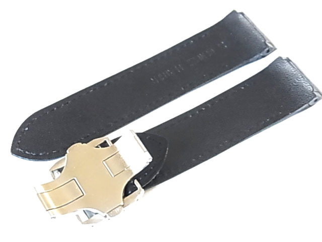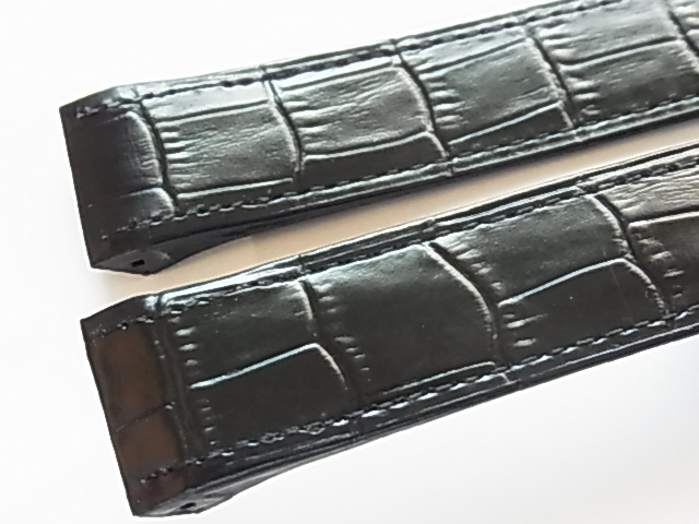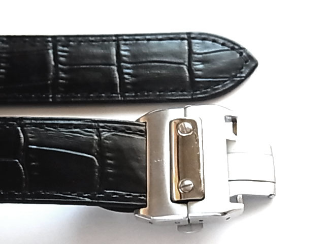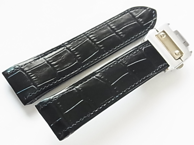 本革 クロコ型押し バックル付属 黒 23mm (カルティエ サントス100交換用)32CAR56