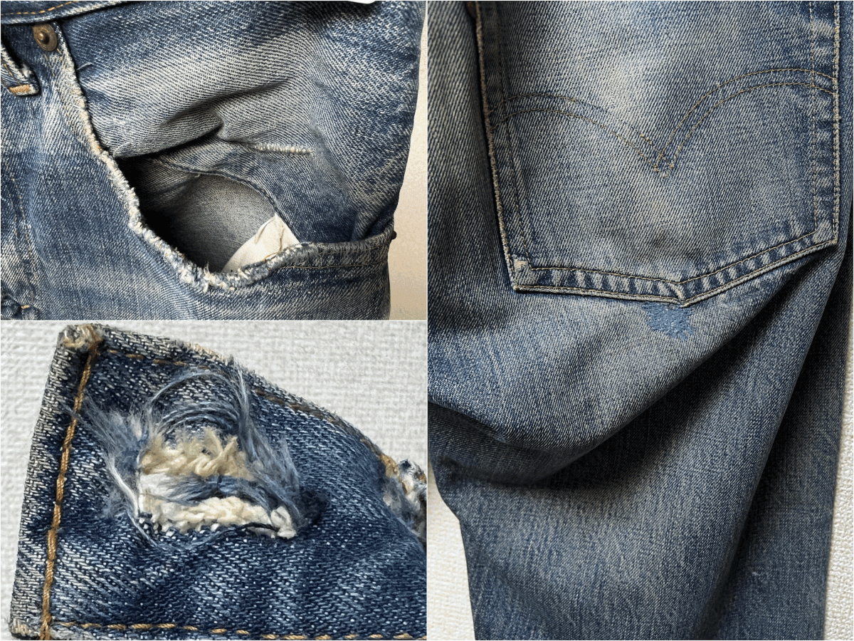 ポケット破れ、汚れ、リペア、ボタンホールほつれ等使用感ございます。