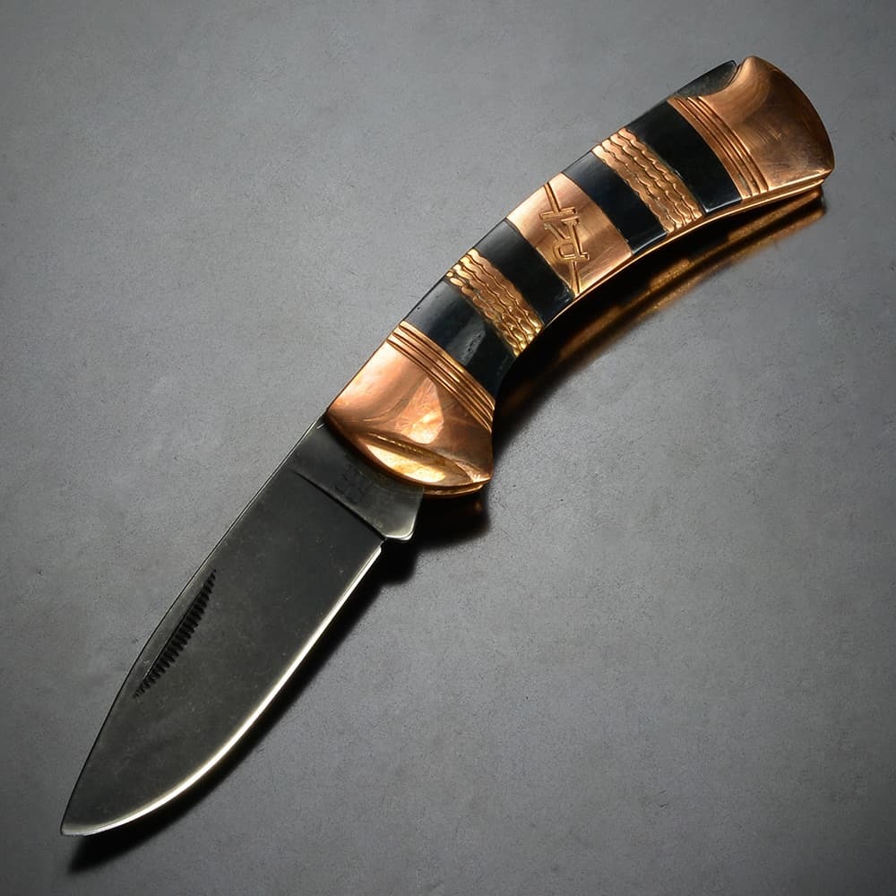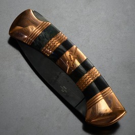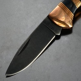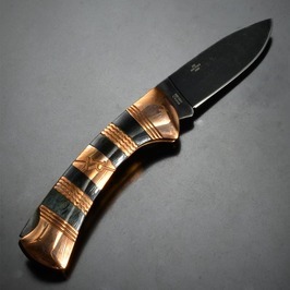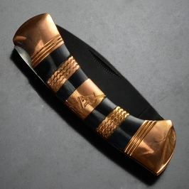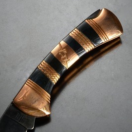 黒染めされたスムースボーンと銅製インレイを交互にはめ込んだ2トーンカラーハンドル。